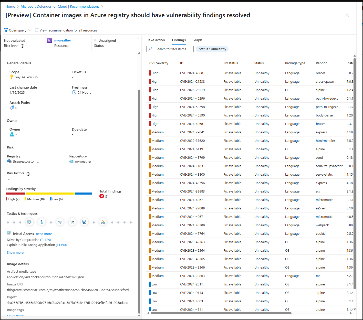 However, rather than showing me a good detailed scan, I instead saw that “Defender for Cloud” just gave me some bland recommendation for my container registry not my actual repositories.