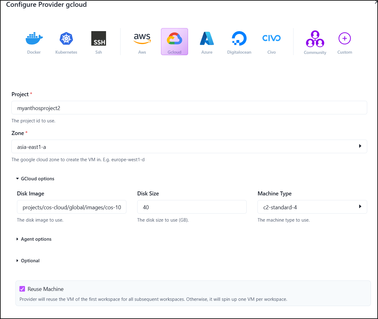 It is in the last step we are presented with “providers” which is where our devpods will live