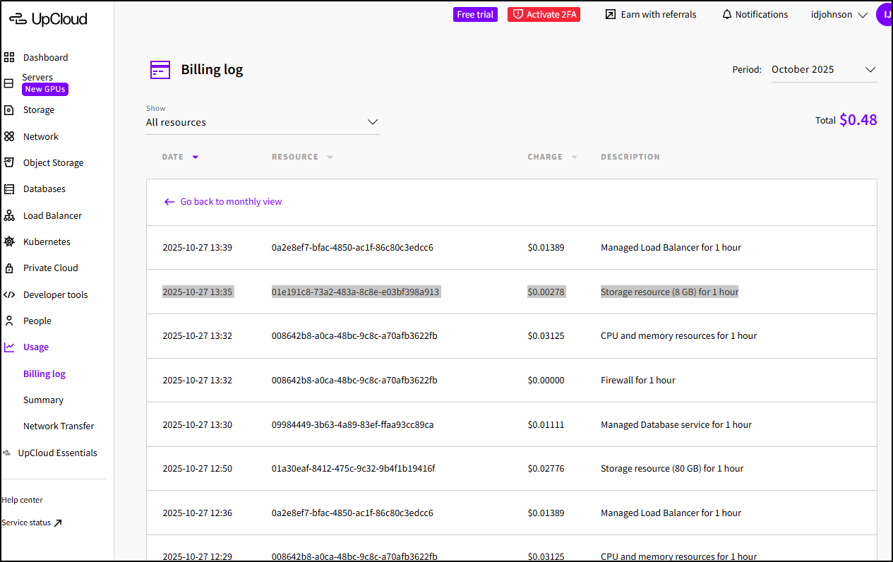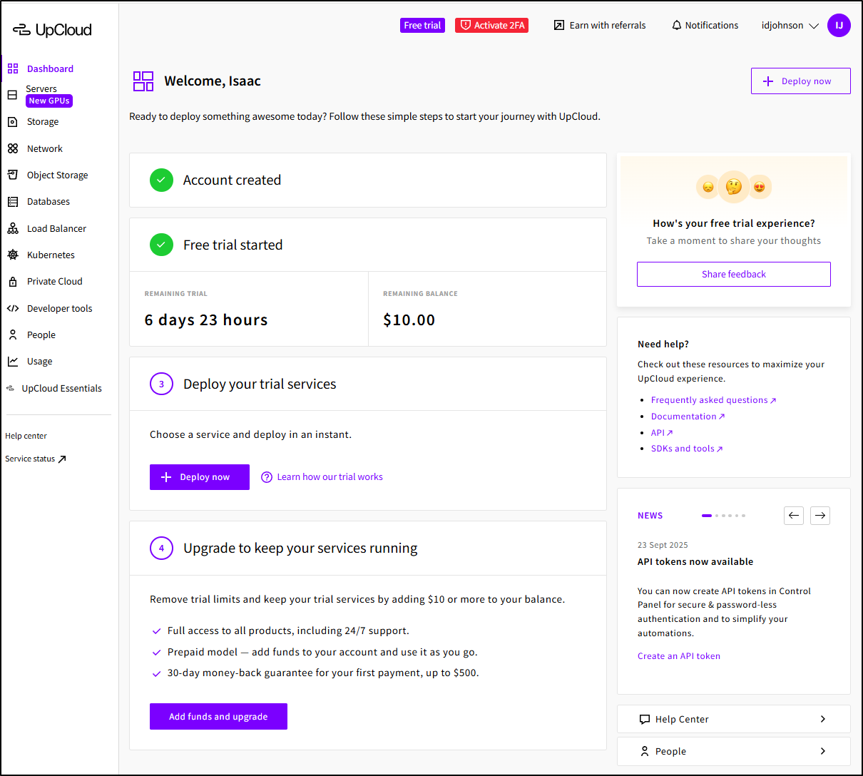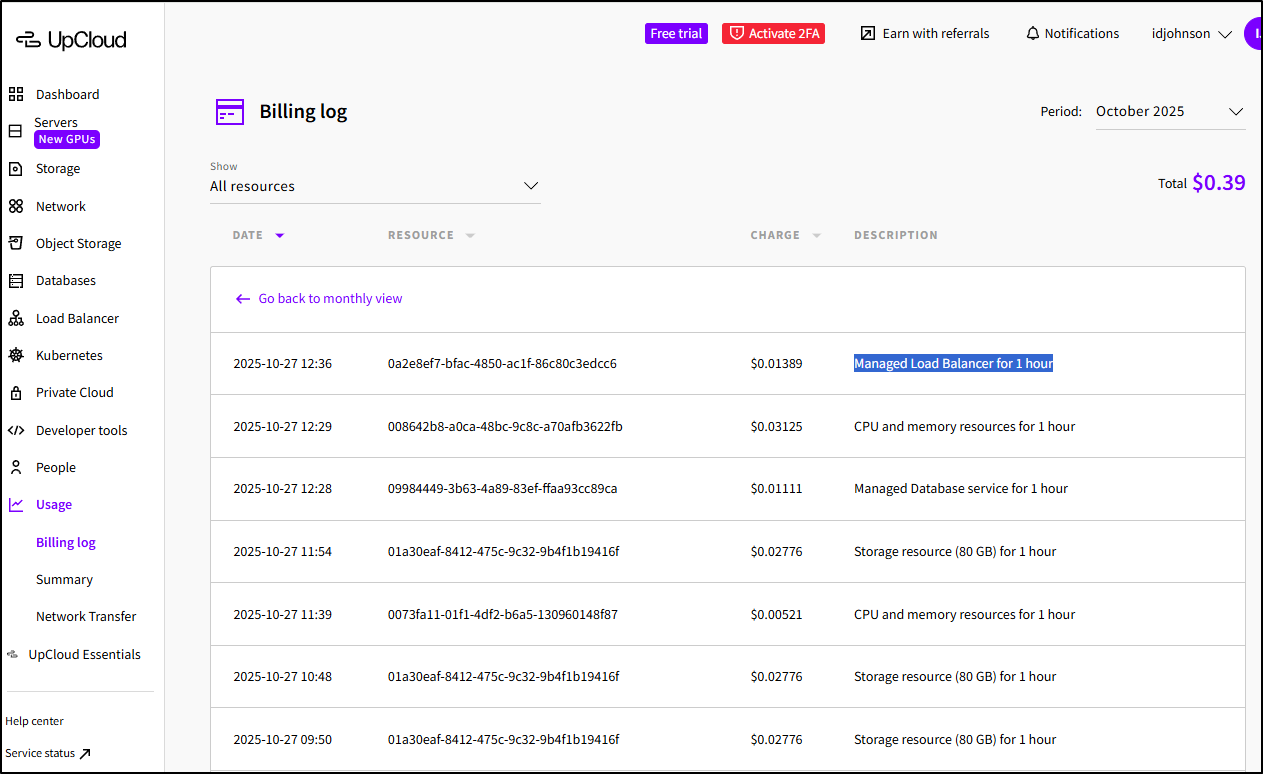 But the more I dug in, the more I found myself really enjoying UpCloud. Fewer and fewer cloud providers really give a decent trial and 7days/$10 covers a lot of ground if you move fast. I think everything you see in the next two articles was under US$2 in spend and just a day or two in time.