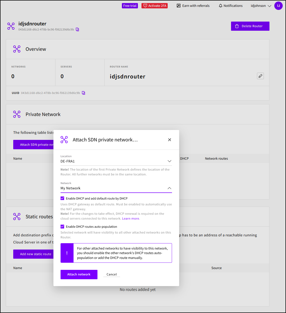 I’ll then attach the SDN router to my existing “My Network”