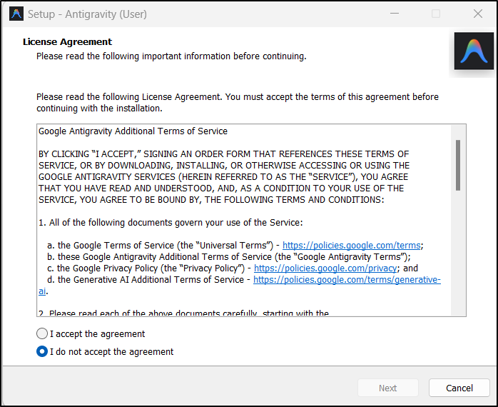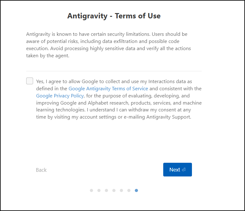 The last step I would almost always agree to, but it listed Machine Learning and I don’t want, by default, to have my editor feed AI training
