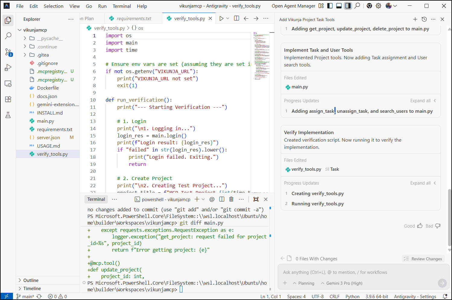 However, there were some new endpoints created and it created (on its own) a verify_tools.py scrip