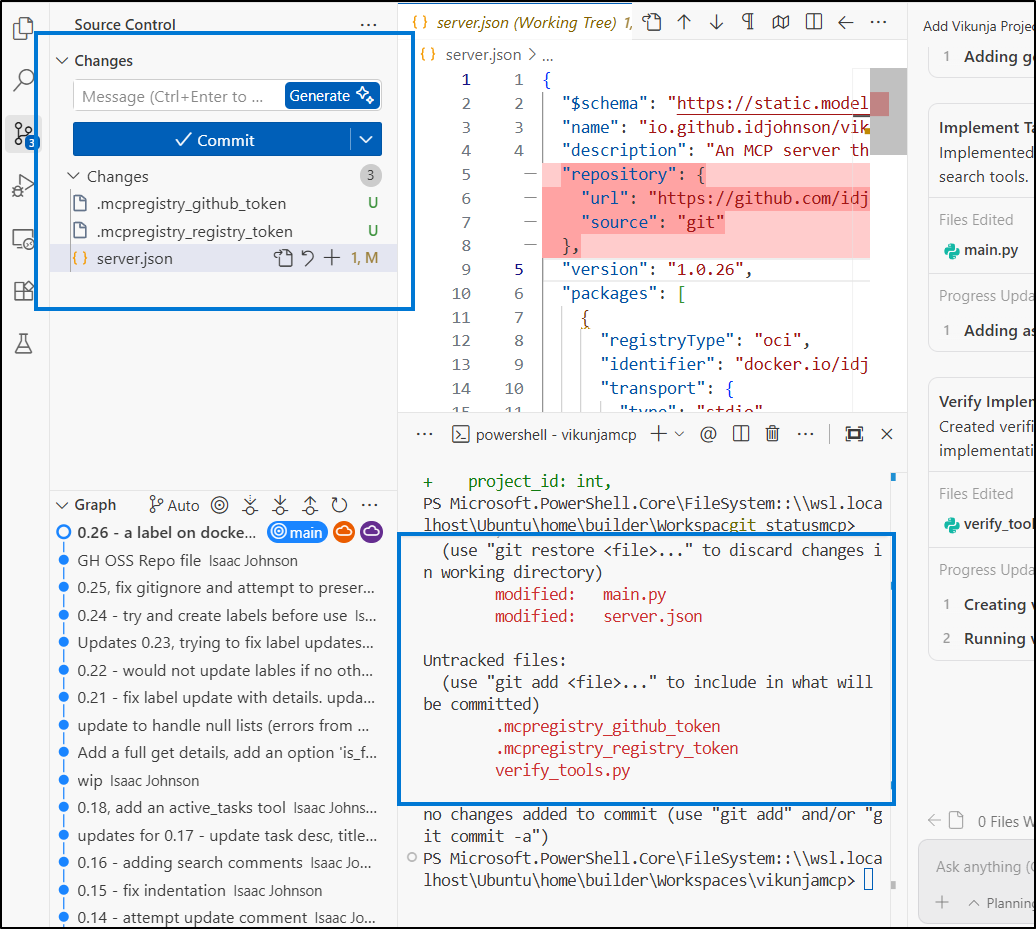 One thing i’m trying to rectify is why the source control tab shows just a subset of the changes (i see the full list using git in the terminal)