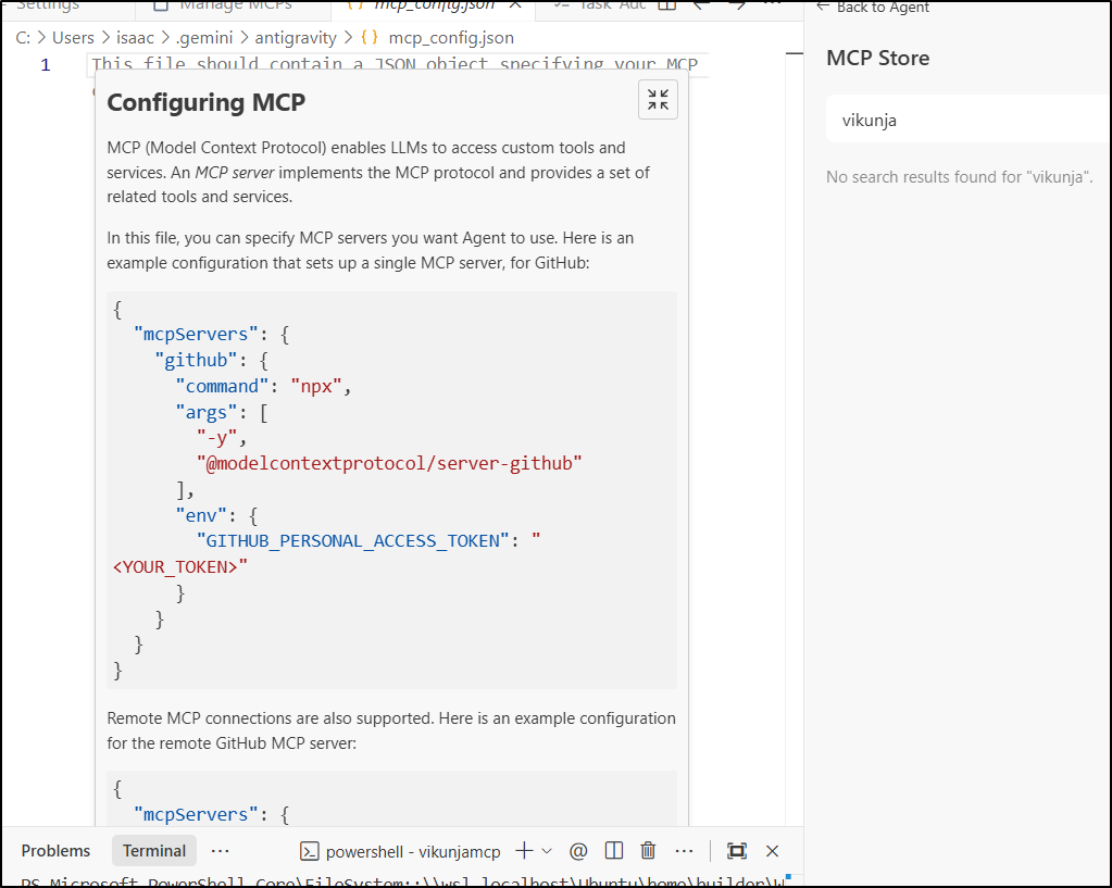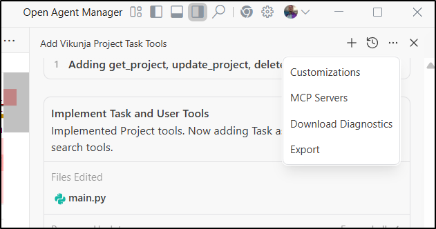 We don’t get that in Aggy. However, this isn’t a deal breaker. I can go back to “manage” and “refresh” to see the MCP server listed with the various tools