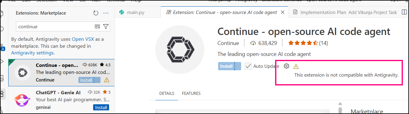 however, my Continue.dev extension is not available, which is how I use all the other models and Azure hosted OpenAI models