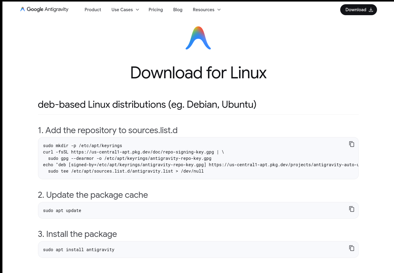 sudo gpg --dearmor -o /etc/apt/keyrings/antigravity-repo-key.gpg