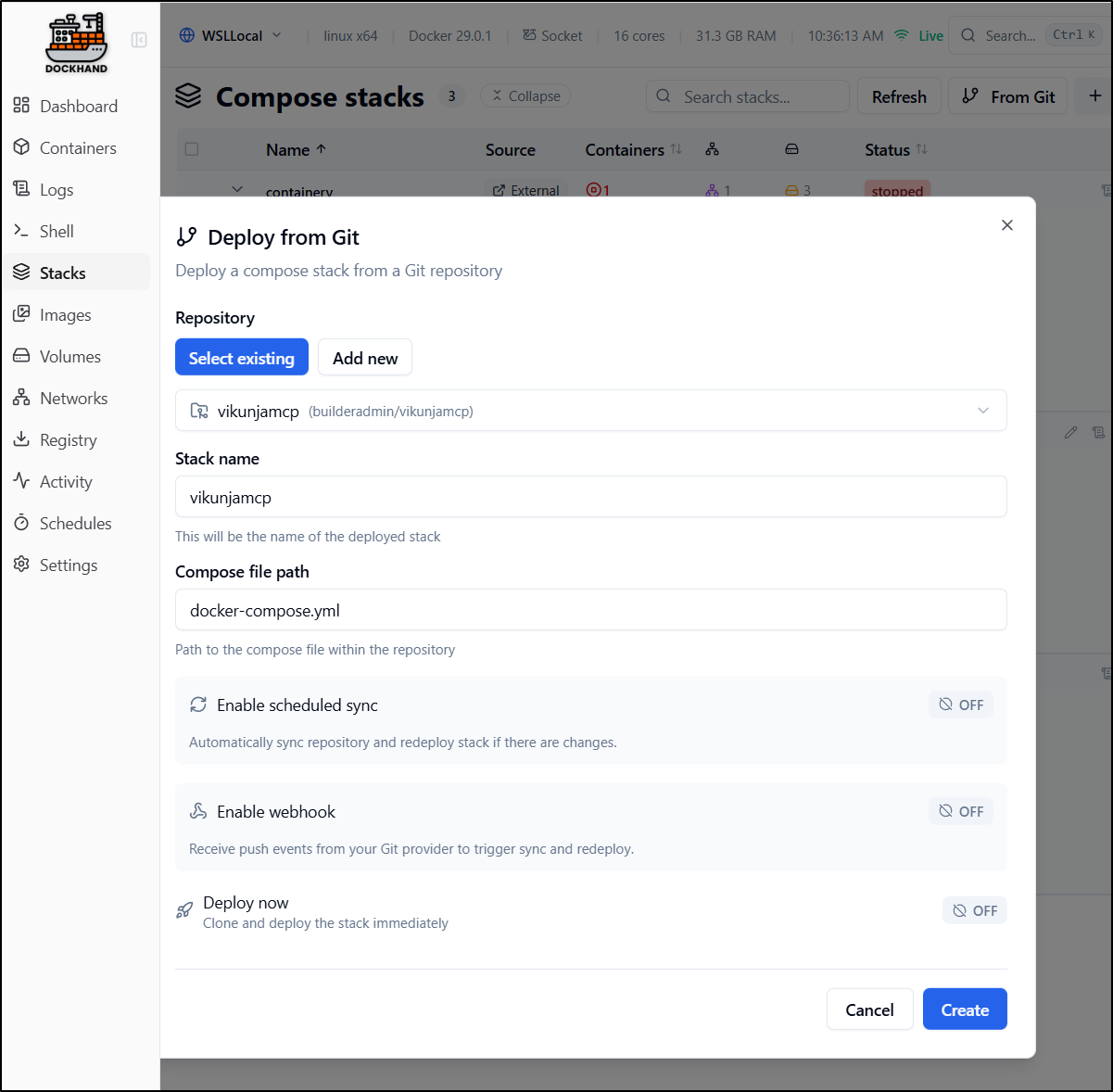 Now when launching a stack, I can use the GIT repo to fetch the docker compose