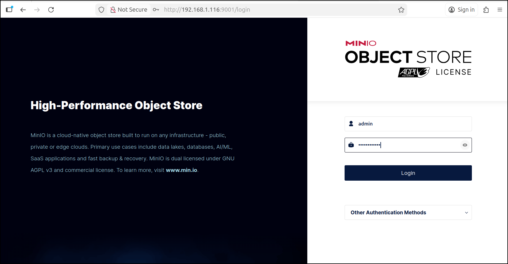 I can login to the MinIO