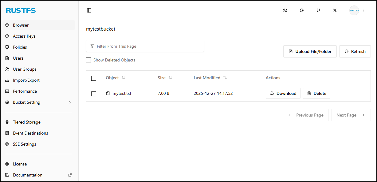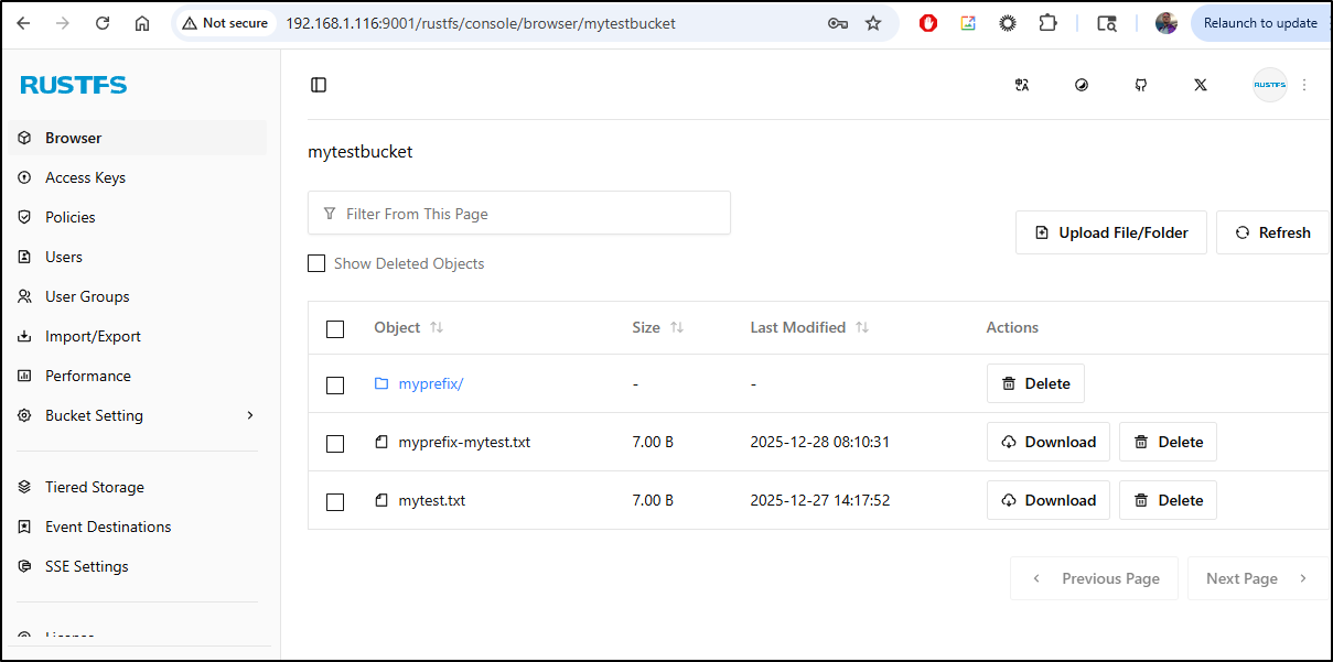 There were some hiccups - I couldn’t get the Tiered Storage in RustFS to do anything, but there is little documentation on it so hopefully it’s just an education issue on my part. I think I know what the WebUI for Garage is about, but I’ll save it for later (you can expose a bucket as a website).