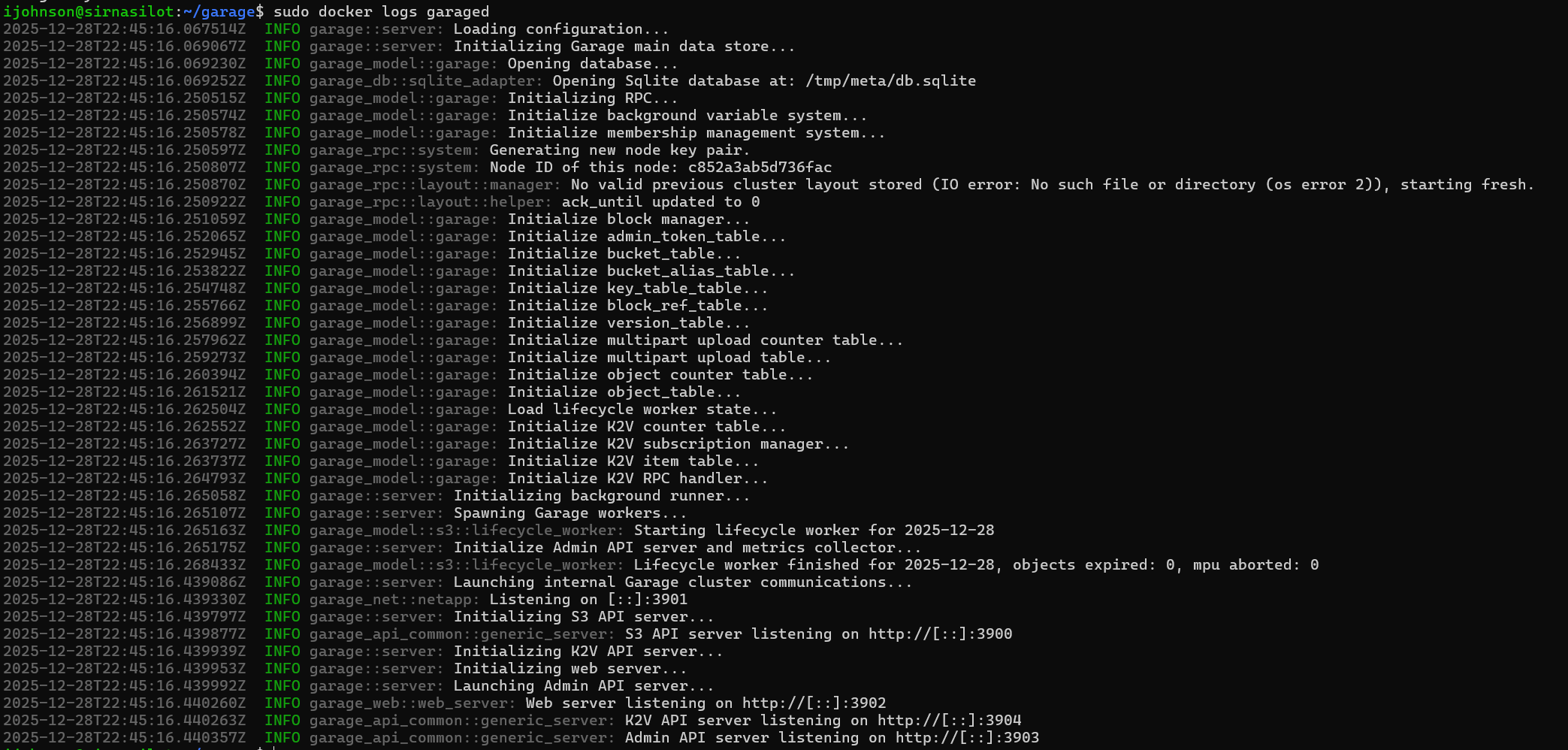 2025-12-31T15:36:56.952267Z INFO garage_net::netapp: Connection established to c852a3ab5d736fac