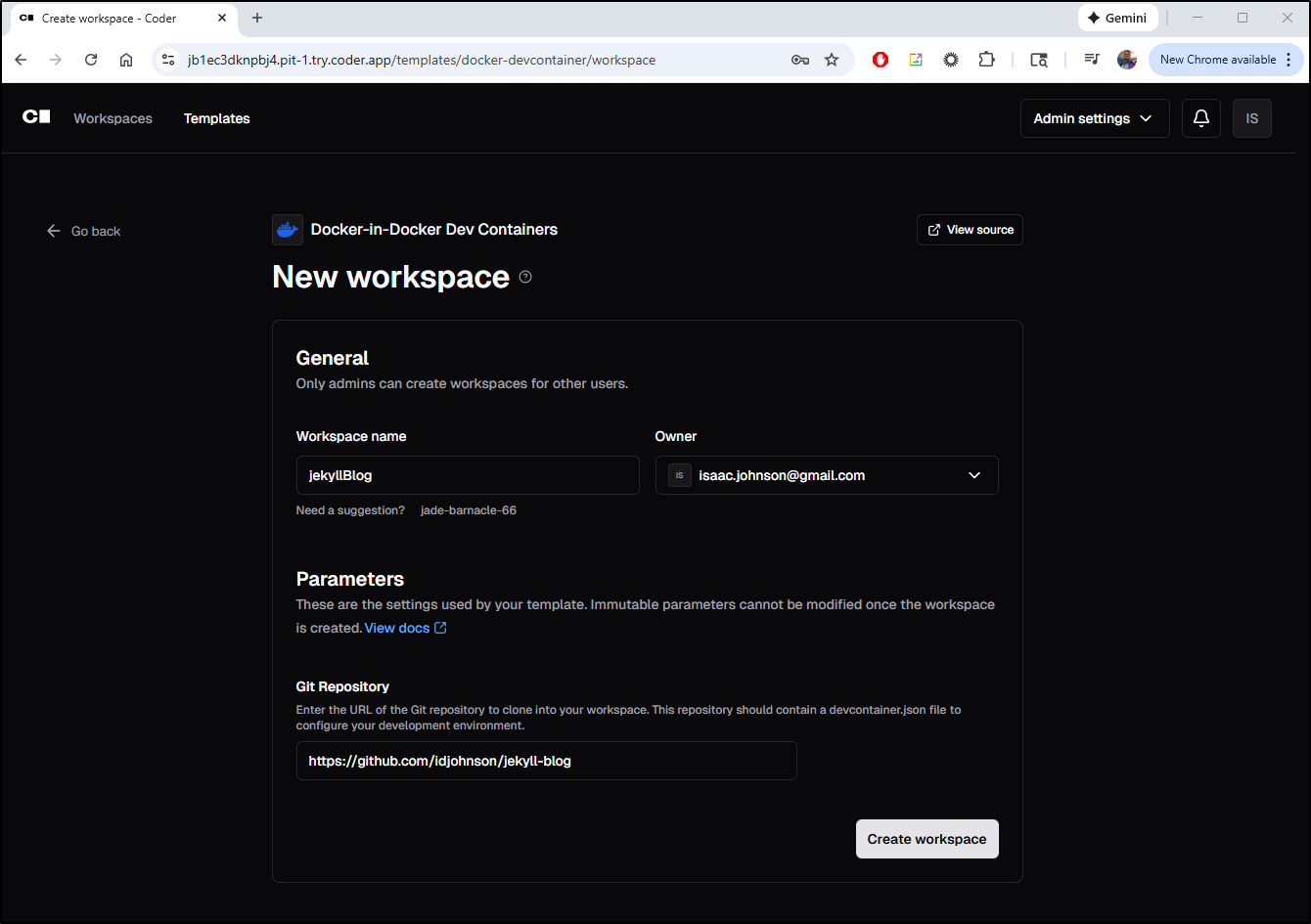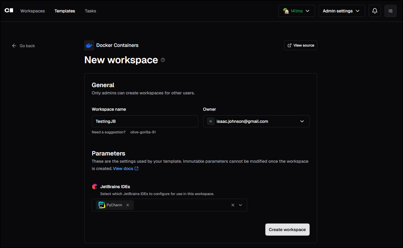 We can then “create workspace”