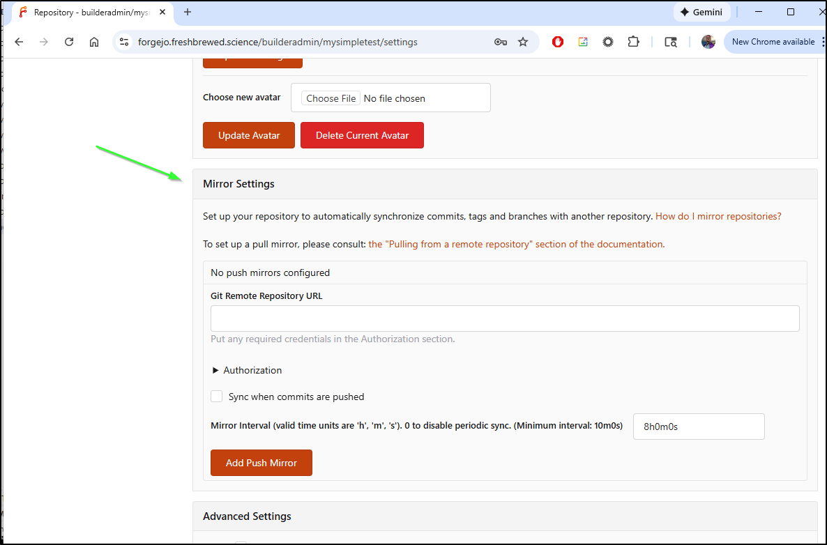 And for reference, in both Forgejo and Gitea, those mirror settings are in main settings for each Repo