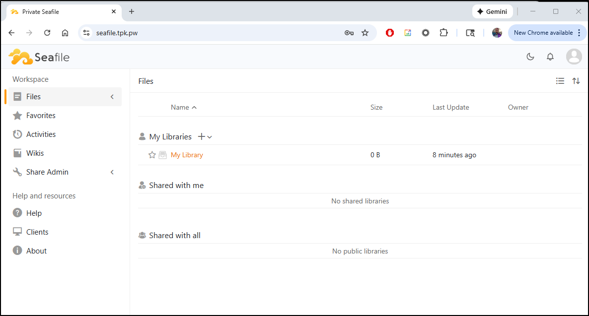 Also from a Marius post I noted Seafile. Seafile looks to be a much more complete file sharing and wiki suite which can run in Docker. We’ll give that a shot as well.