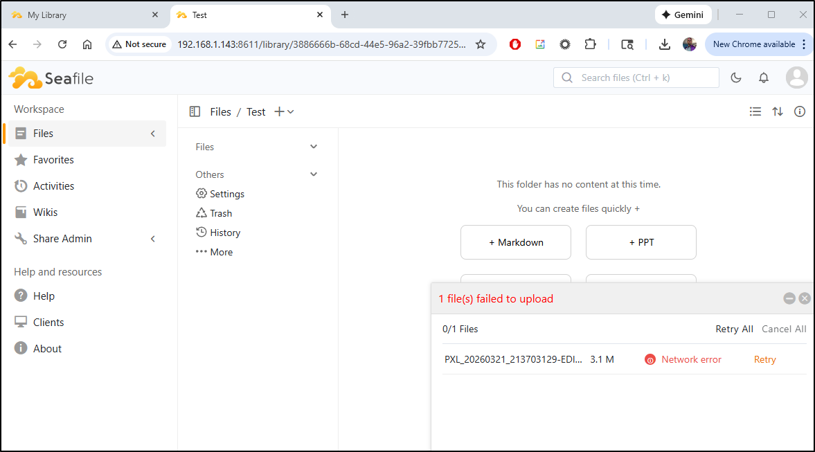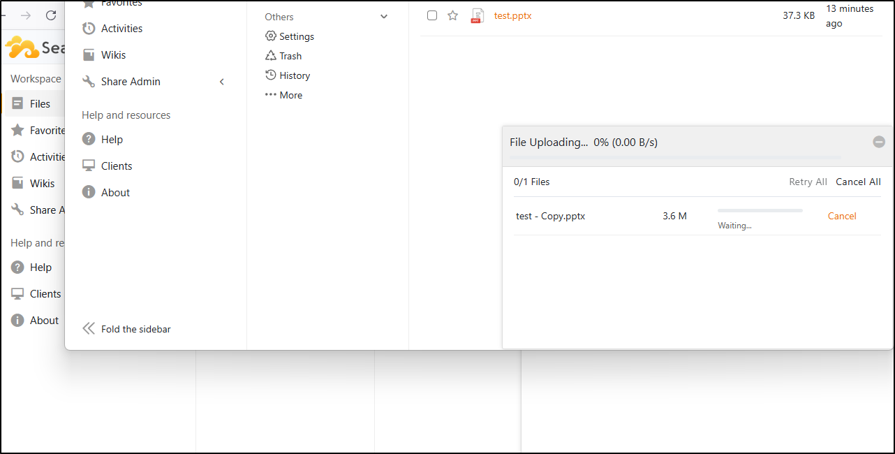 Seafile started okay, but quickly fell down on any file of size. I tried many different options - from Docker to Kubernetes. The company itself is based in China and Singapore and has been around since 2012 so perhaps there are just bugs with this latest version as it’s less than a month old.