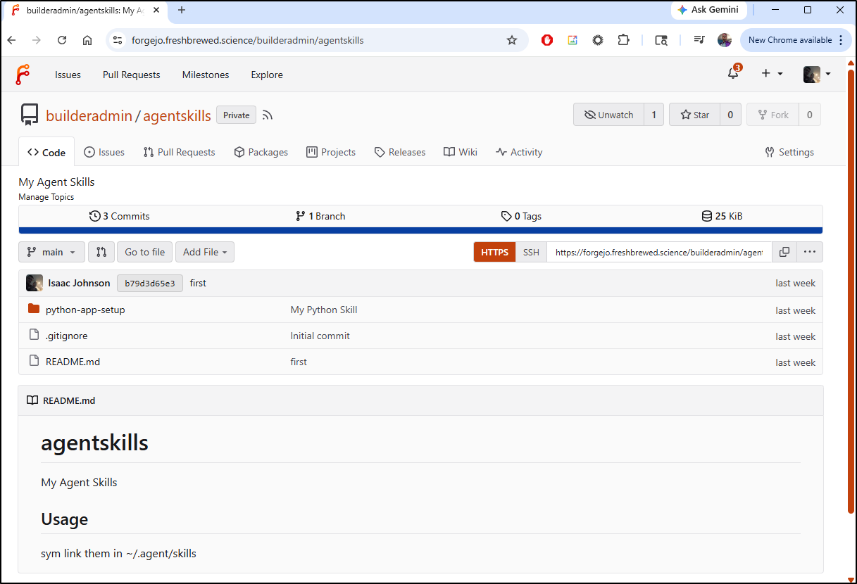 $ ln -s /home/builder/Workspaces/agentskills/python-app-setup /home/builder/.agents/skills/python-app-setup