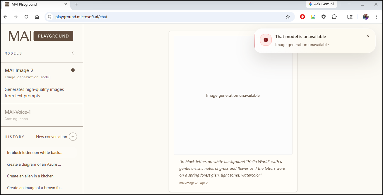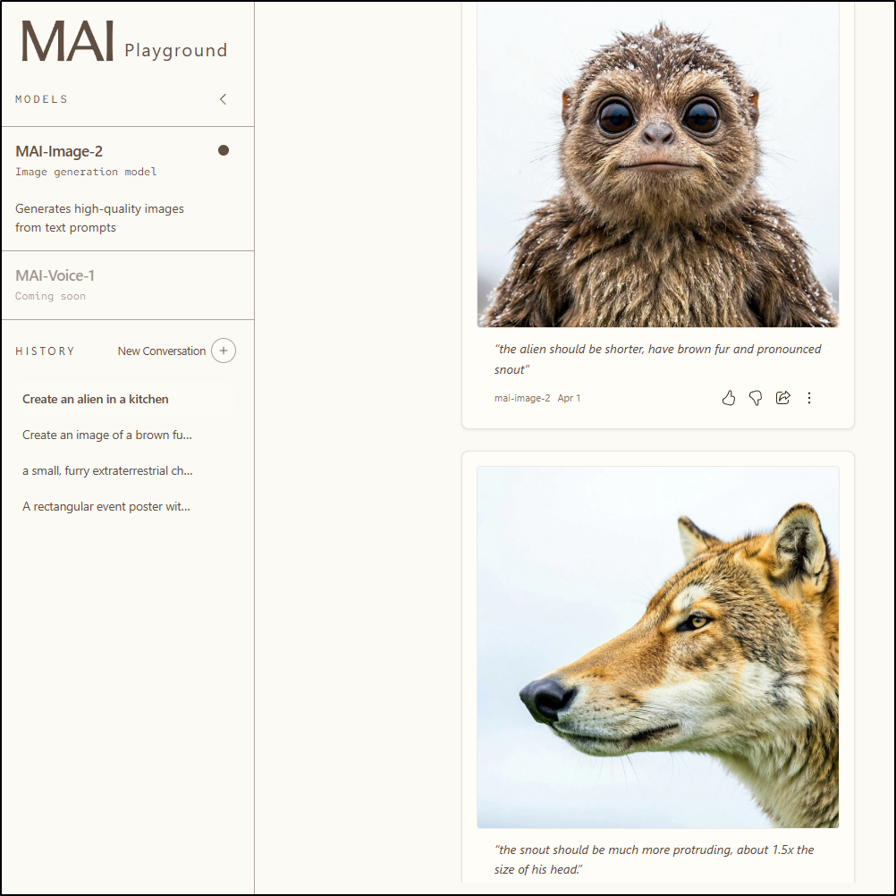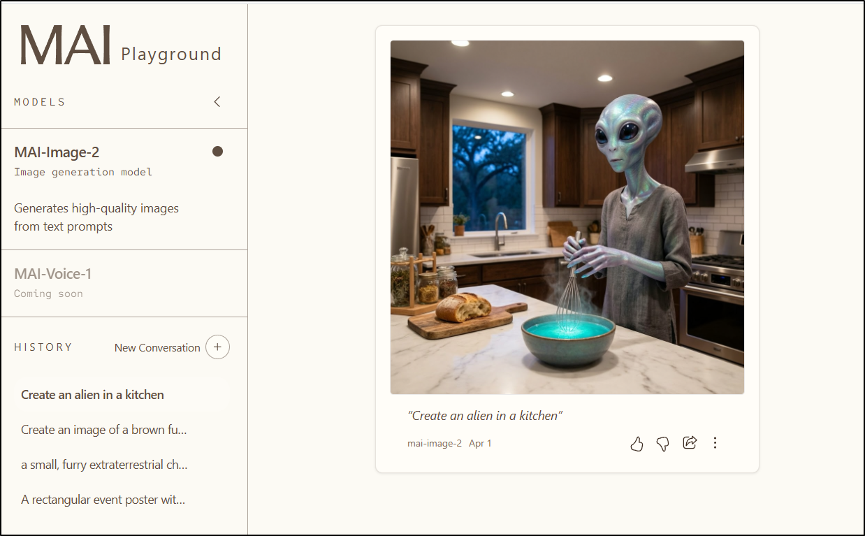 My goal was to look at Microsoft AI Playground, aka MAI. Today it just does images, but says voices are coming soon.
