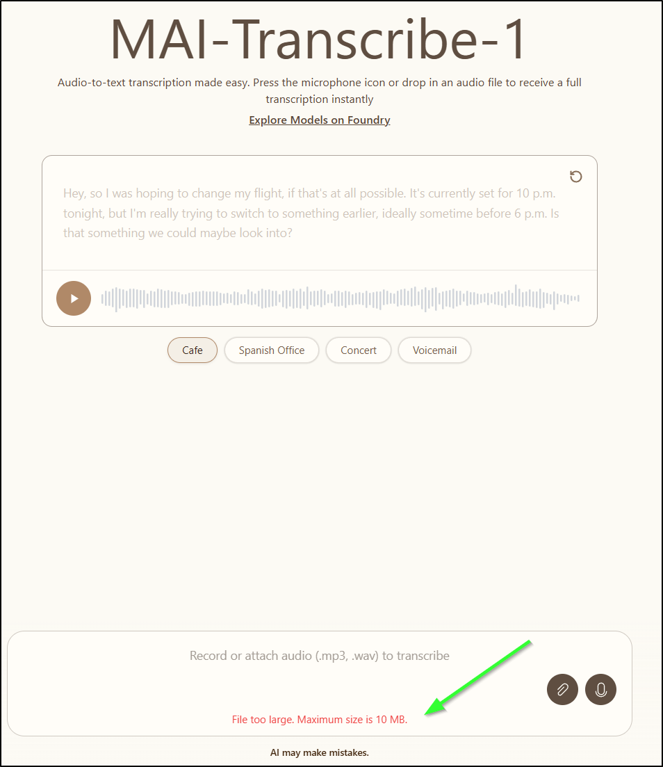 Then use the MAI playground to convert it to text