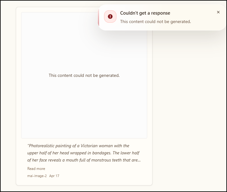 Also, horror images are also blocked as before (trying the same prompt as last time)