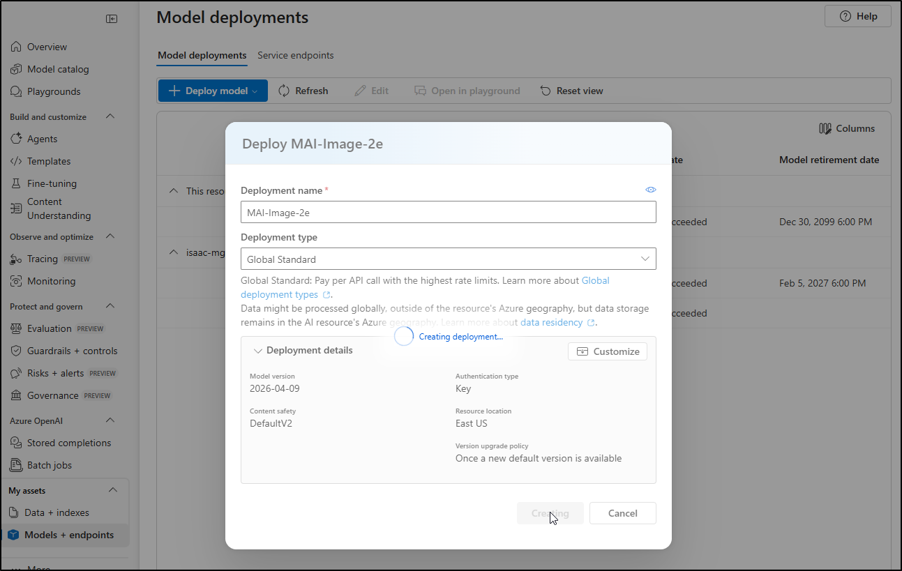 As with Flux, let’s try deploying the new MAI model (2e) to our AI Foundry instances