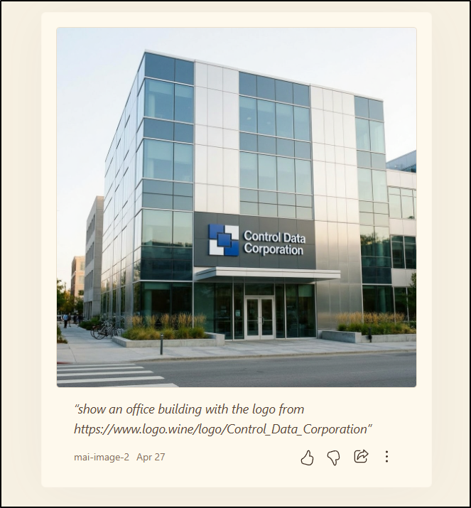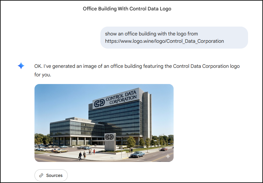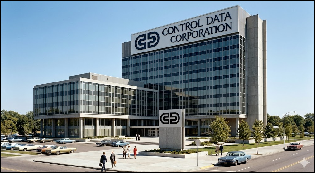 show an office building with the logo from https://www.logo.wine/logo/Control_Data_Corporation
