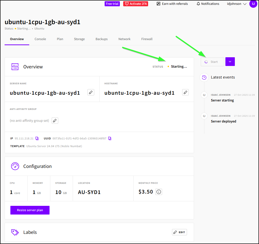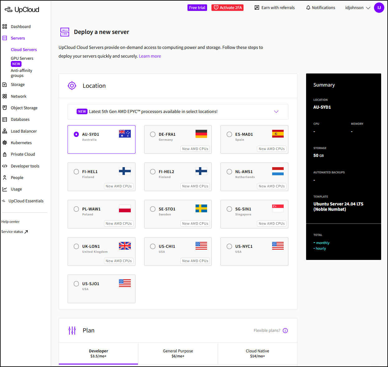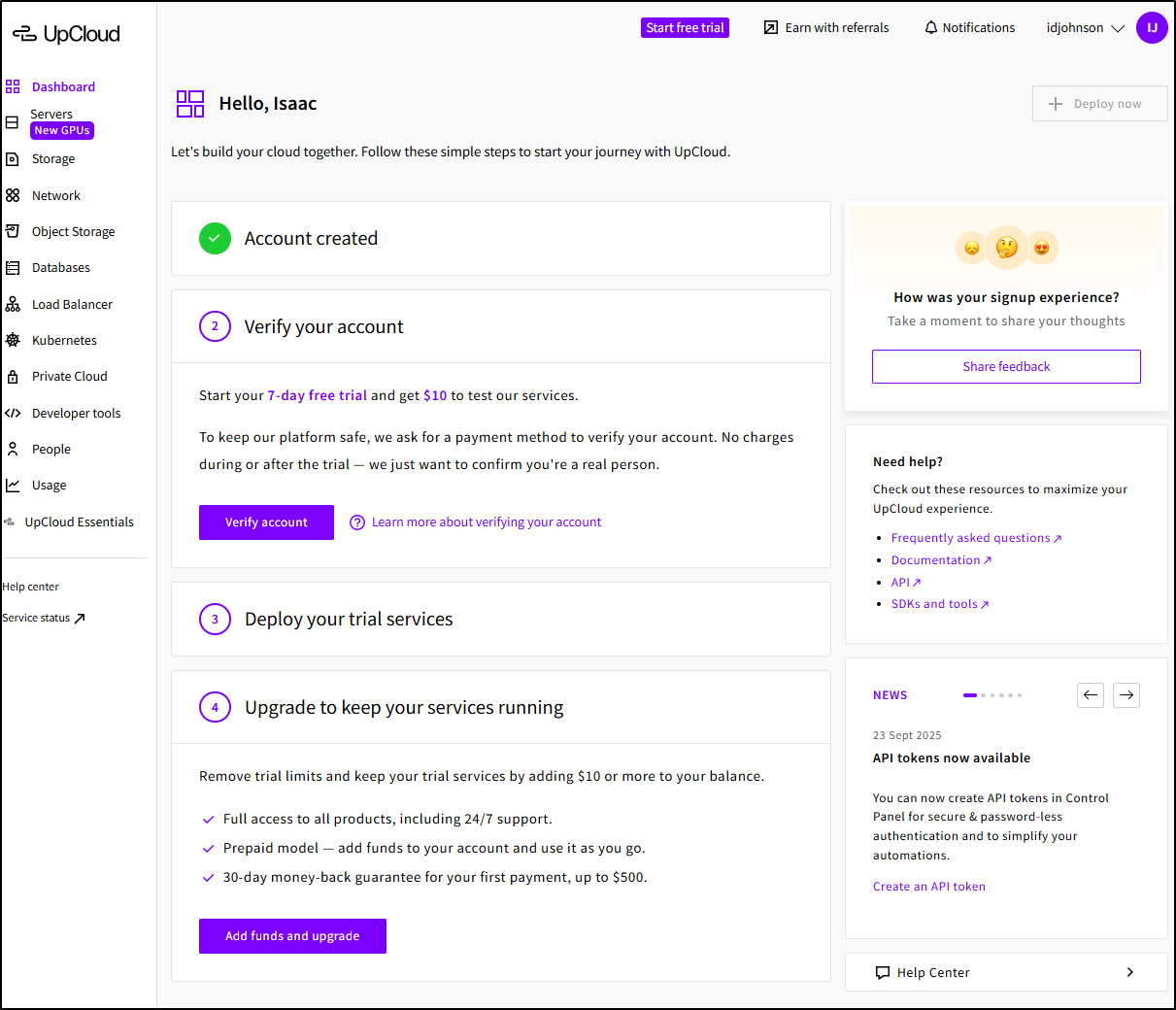 But the more I dug in, the more I found myself really enjoying UpCloud. Fewer and fewer cloud providers really give a decent trial and 7days/$10 covers a lot of ground if you move fast. I think everything you see in the next two articles was under US$2 in spend and just a day or two in time.