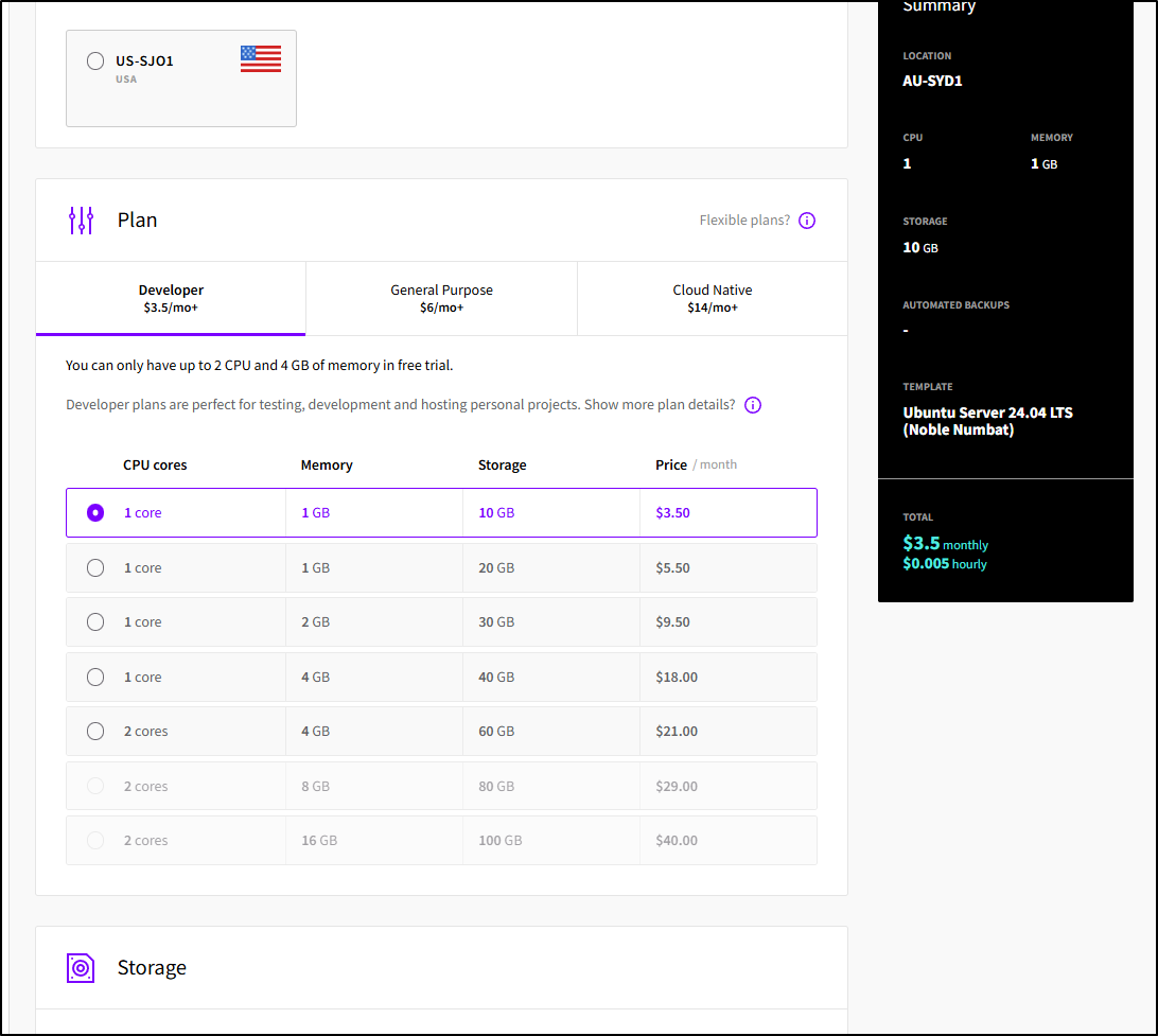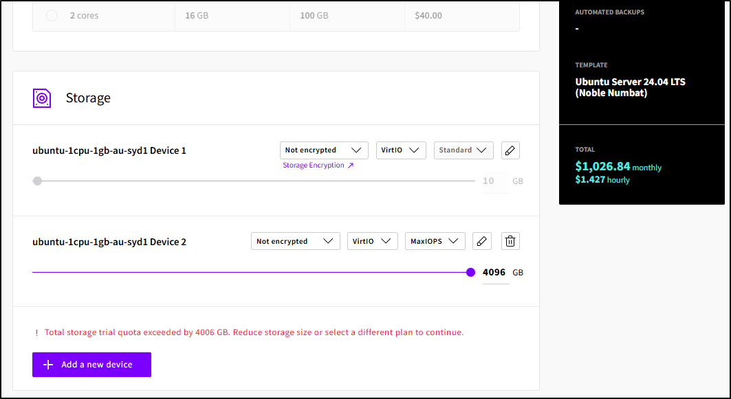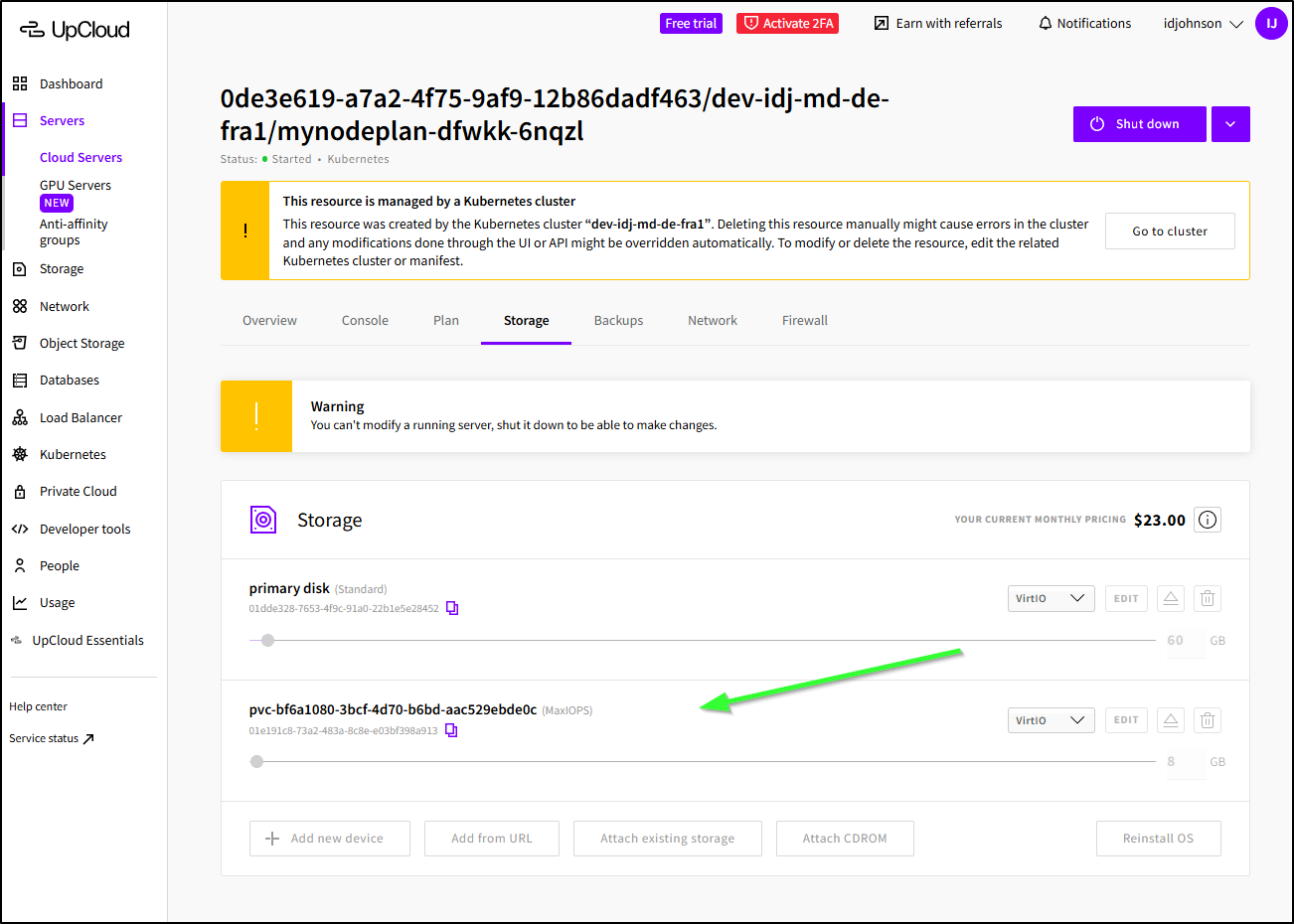 Note: this is not billed like a separate storage volume as we would see in other clouds, we’ll see it tagged onto the Server instance in the Storage tab instead