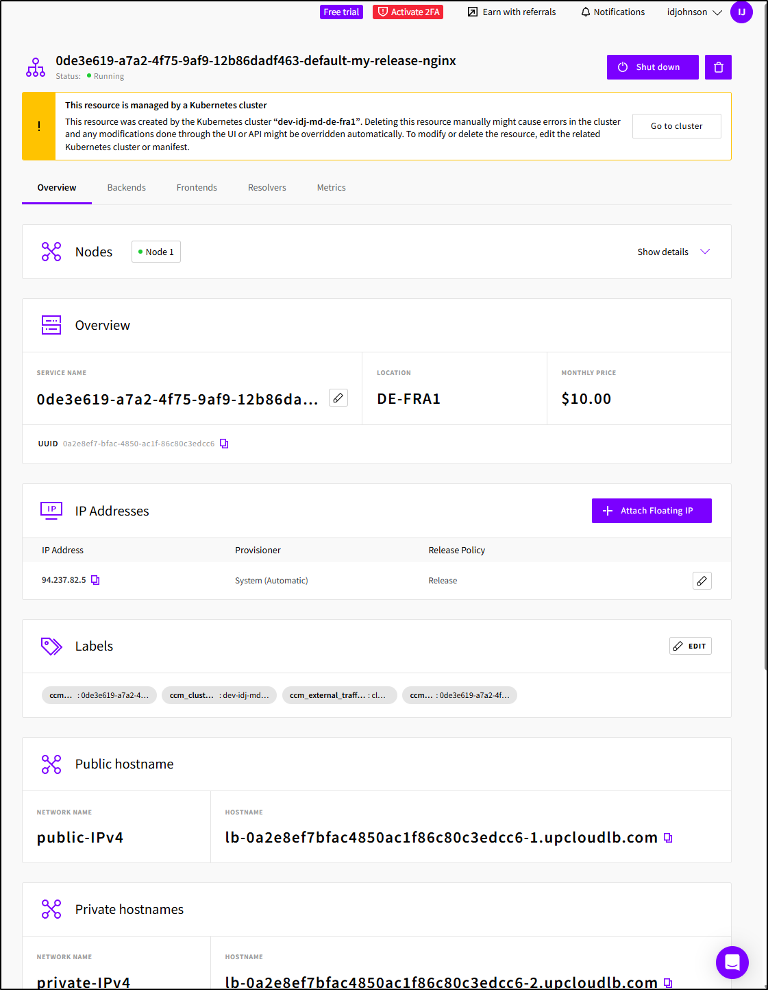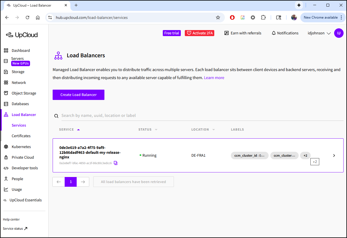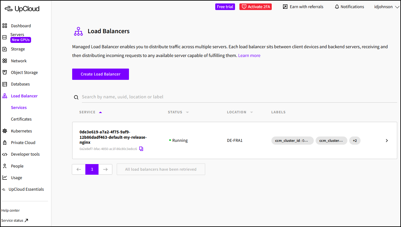 my-release-nginx LoadBalancer 10.96.26.154 lb-0a2e8ef7bfac4850ac1f86c80c3edcc6-1.upcloudlb.com 80:31889/TCP,443:31536/TCP 7m49s