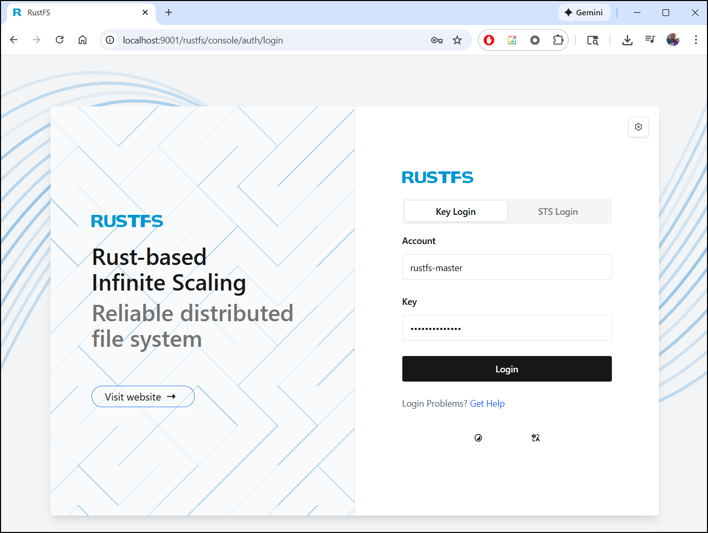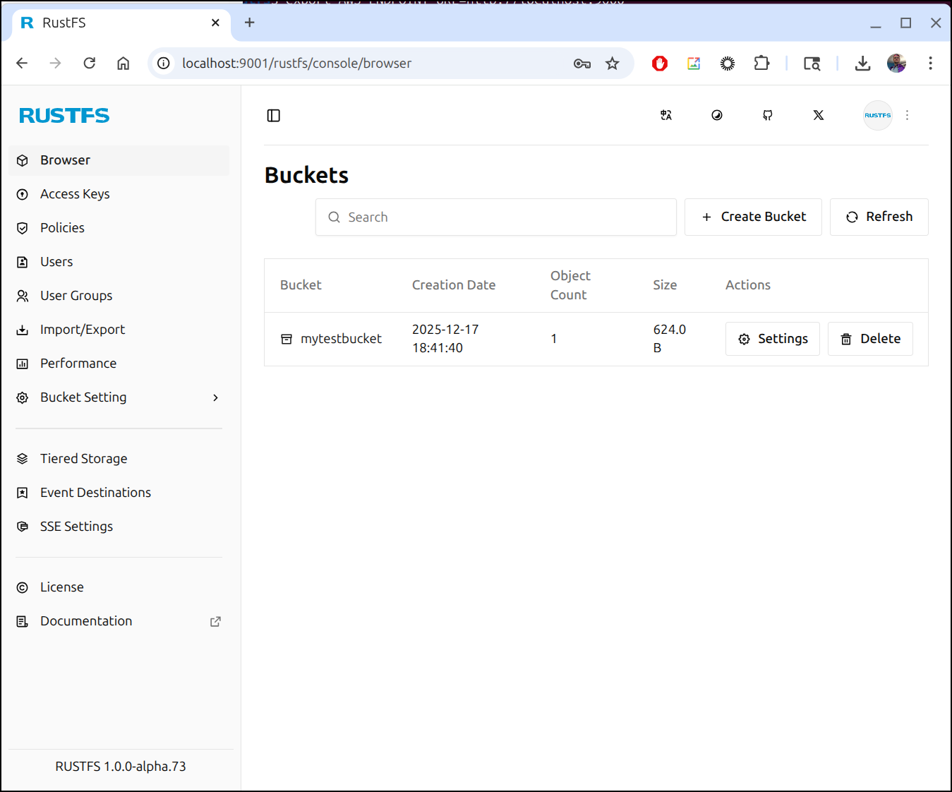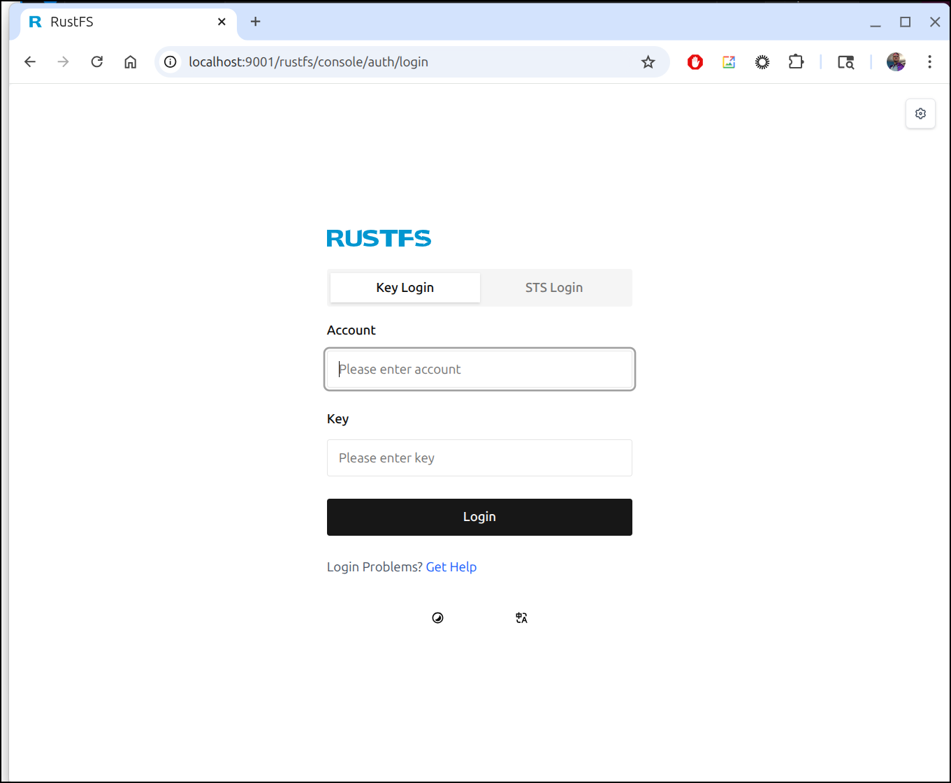 Now let’s access the admin console on http://localhost:9001/rustfs/console/auth/login