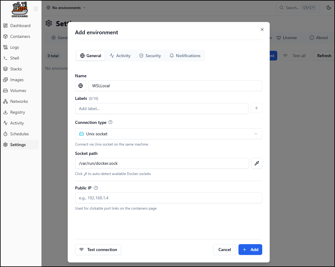Here I’ll give it the name WSLLocal. I can add labels and if I wanted to view this from other machines, I would set the Public IP to the computers local IPv4