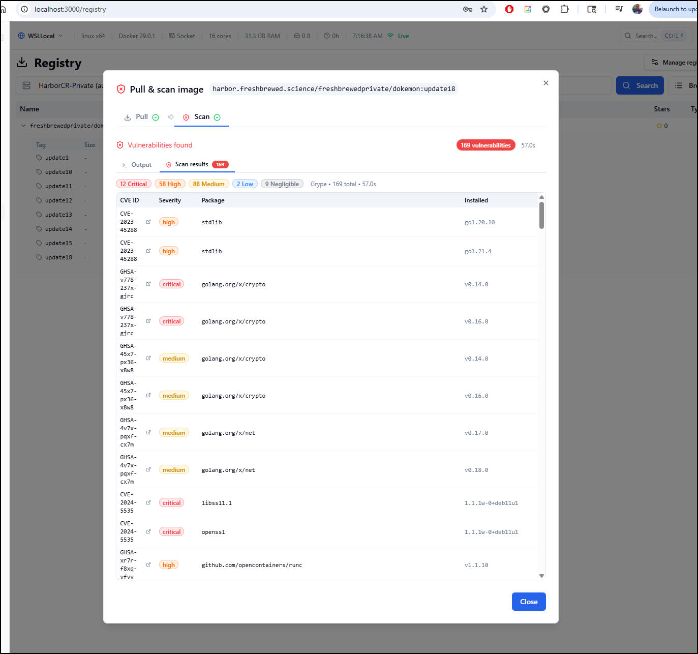 And compare with those found by Grype in Dockerhand