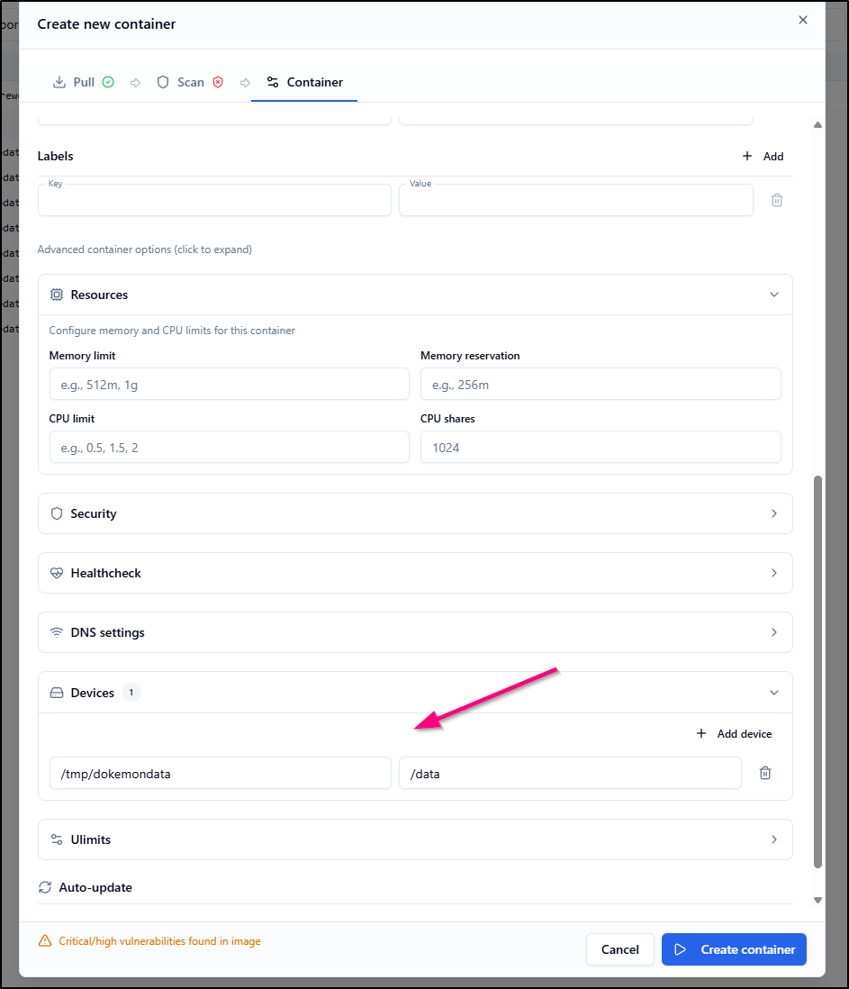 Let’s put a pin into creating and updating containers as I now have some trust issues