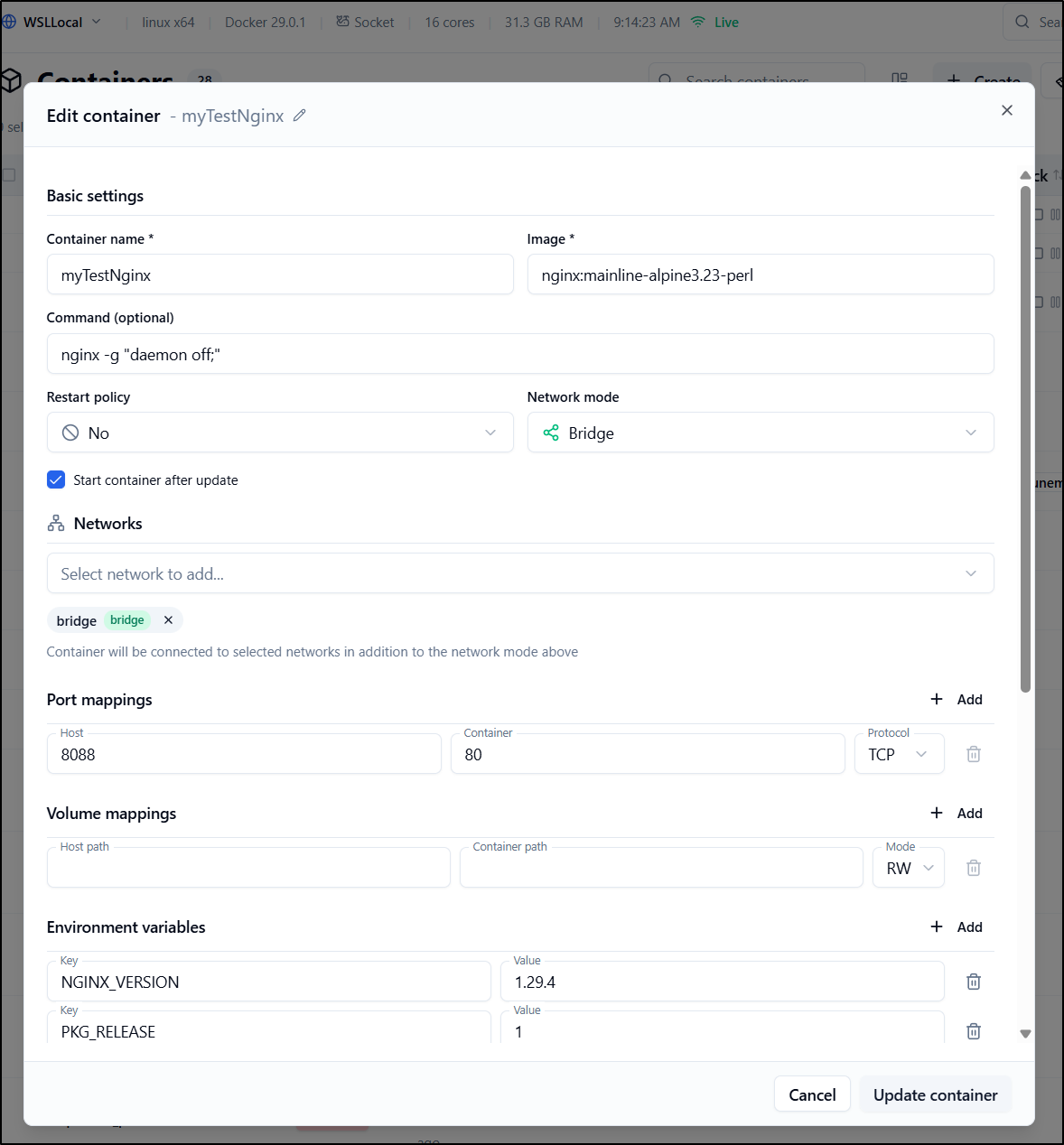 Though, lest you thought I forgot, I did test the container ports on the newer Ubuntu host and it too gave that JSON GO struct error so it was not WSL related: