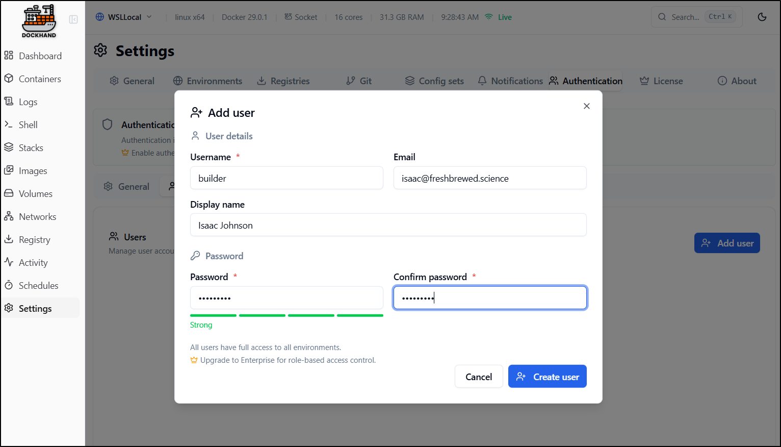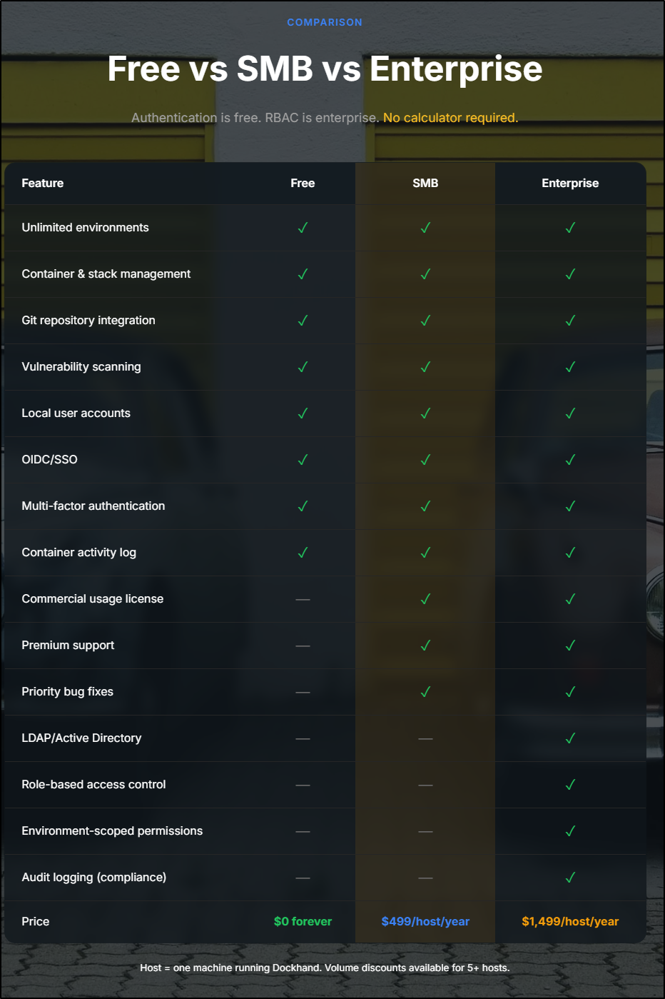 Let’s take a quick look at the Free vs Enterprise Dockhand features: