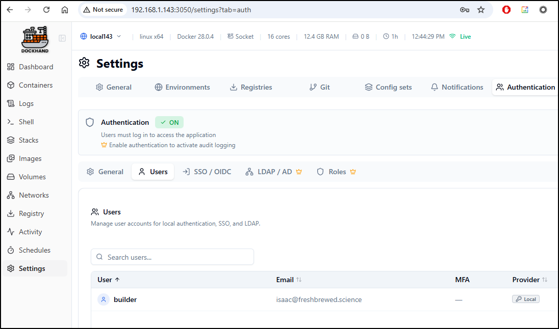 Once we have at least one user, we can enable Authentication