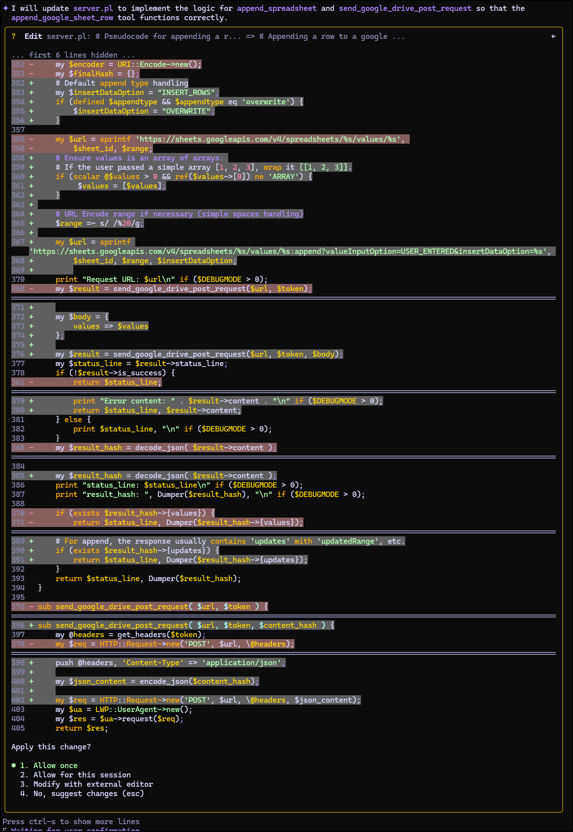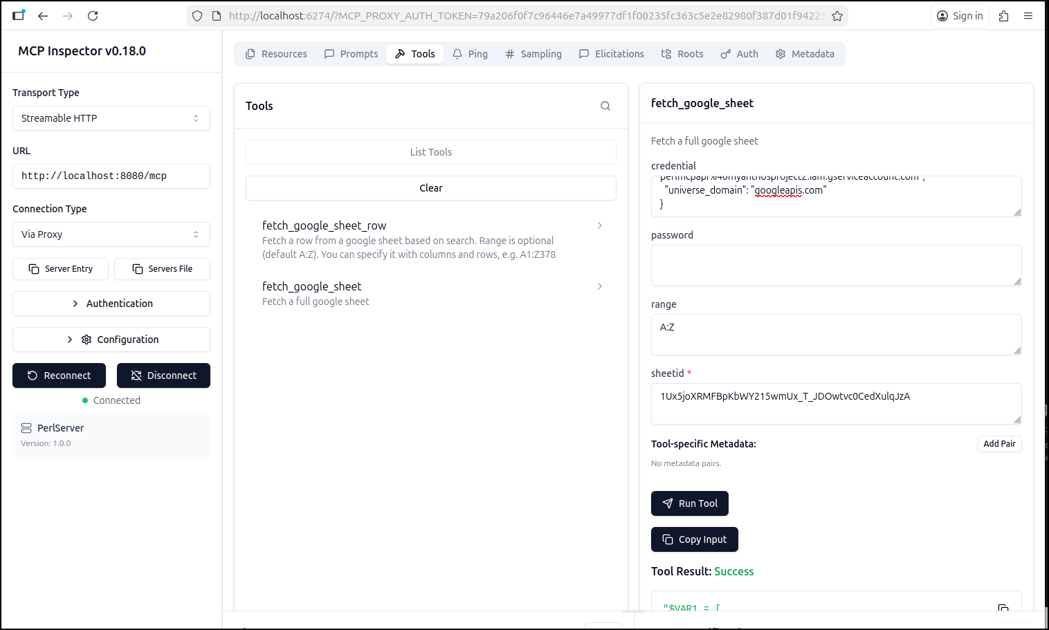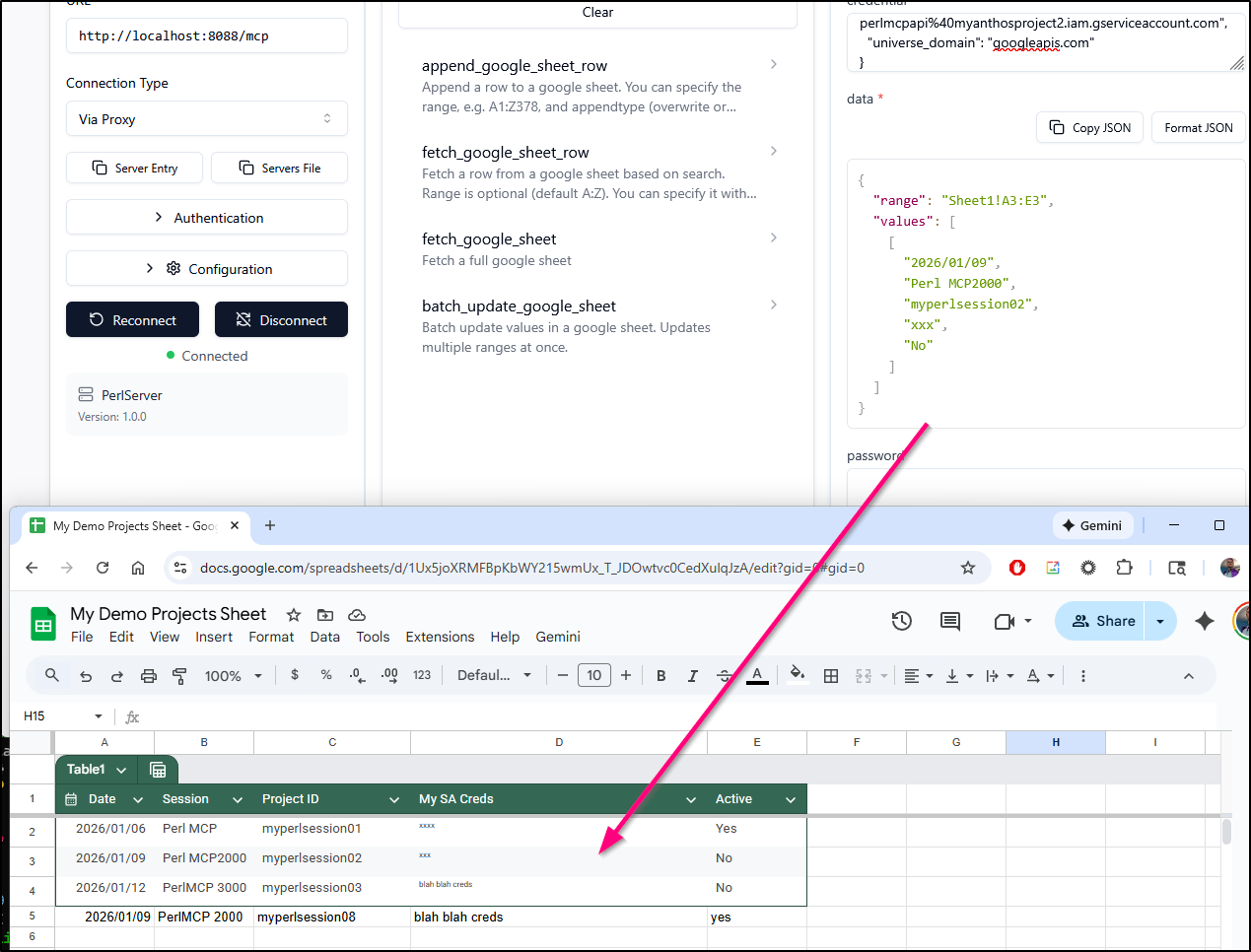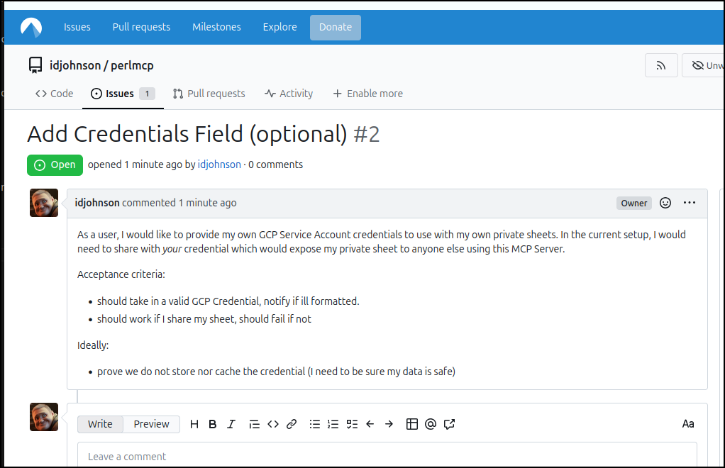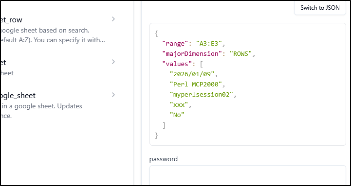 Earlier this week I posted my first article on PerlMCP which I pushed to Codeberg as a version1.0 tag. That code provides a Perl-based MCP server of type httpStreamable tied to a fixed GCP Service Account credential and just protected by a rotatable password.