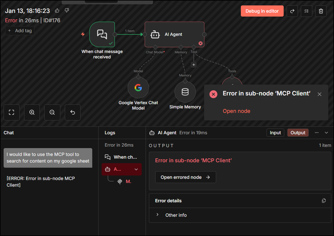 However, for some future work I realized it was failing to connect in n8n: