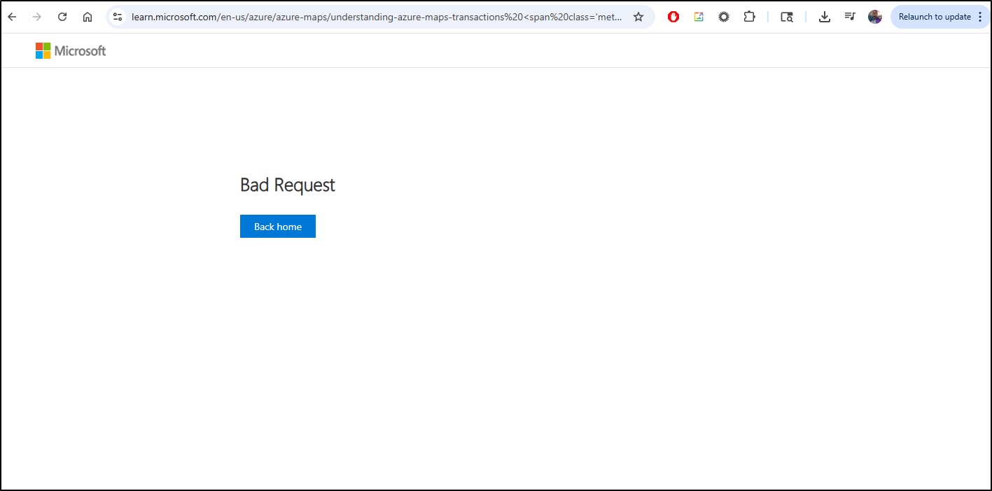 They have a link to “Understanding Azure Maps transactions” that leads to an empty page with “Bad Request” - not looking good Microsoft
