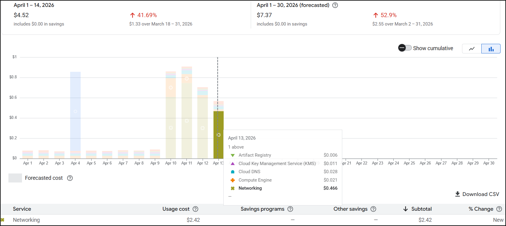 It would seem I was spending roughly 2.5c/hour on ALBs. That means in a month I likely would be spending $20 for the main and test websites