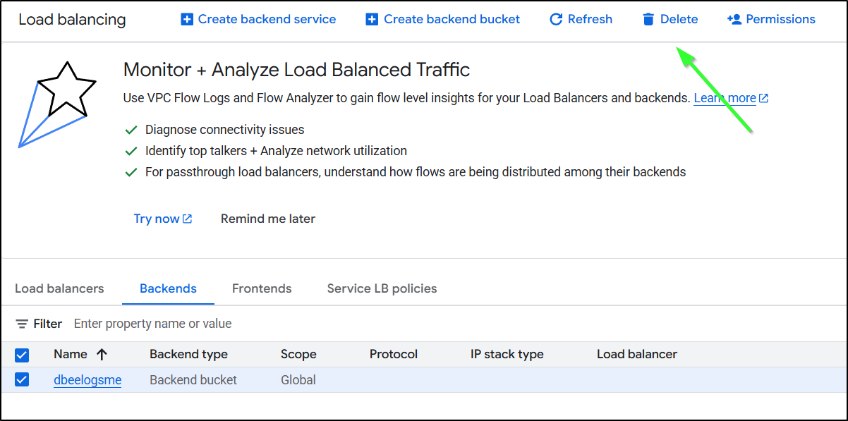 I’ll delete any stray “backend buckets”