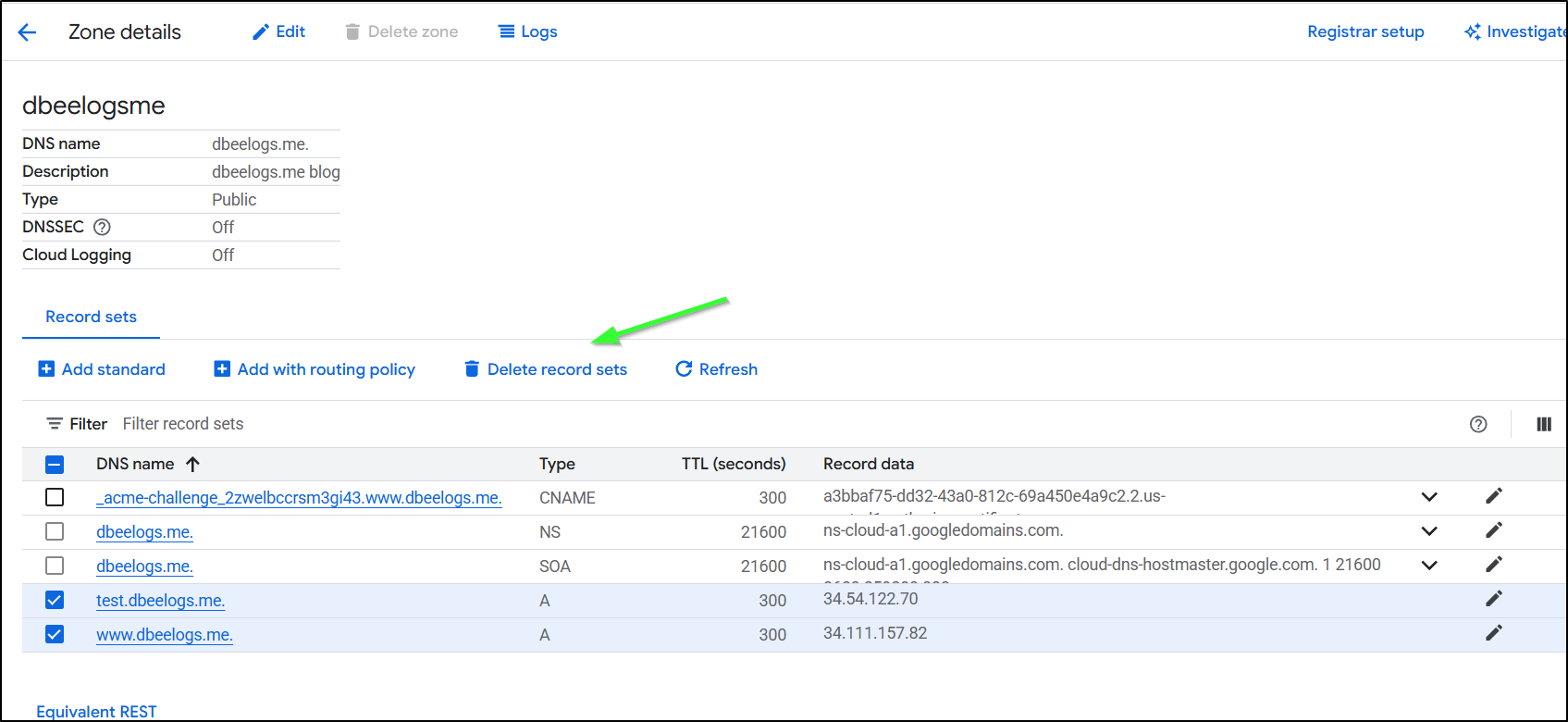 Since I’m trying to do a GCP setup, let’s move that into Cloud DNS for management.