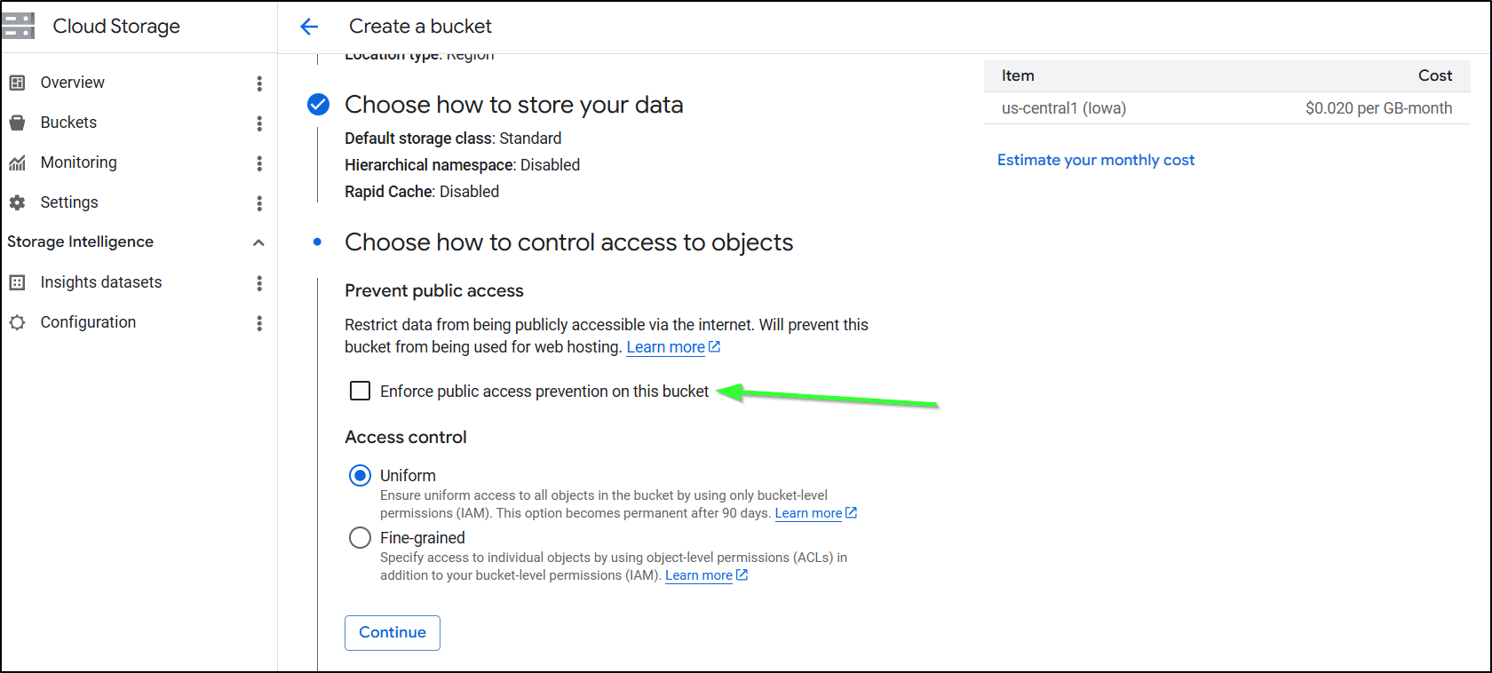 You need to disable/uncheck the ‘enforce public access prevention’. I think the words there could be better but having this box selected means you cant use it for website hosting