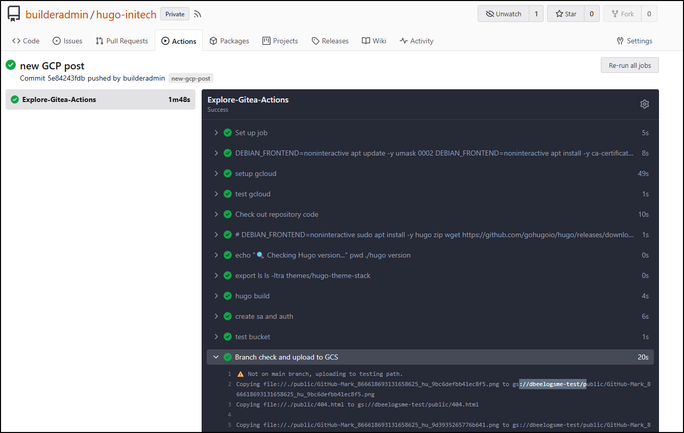 I’ll now make a branch and a local post. I can use hugo serve to test