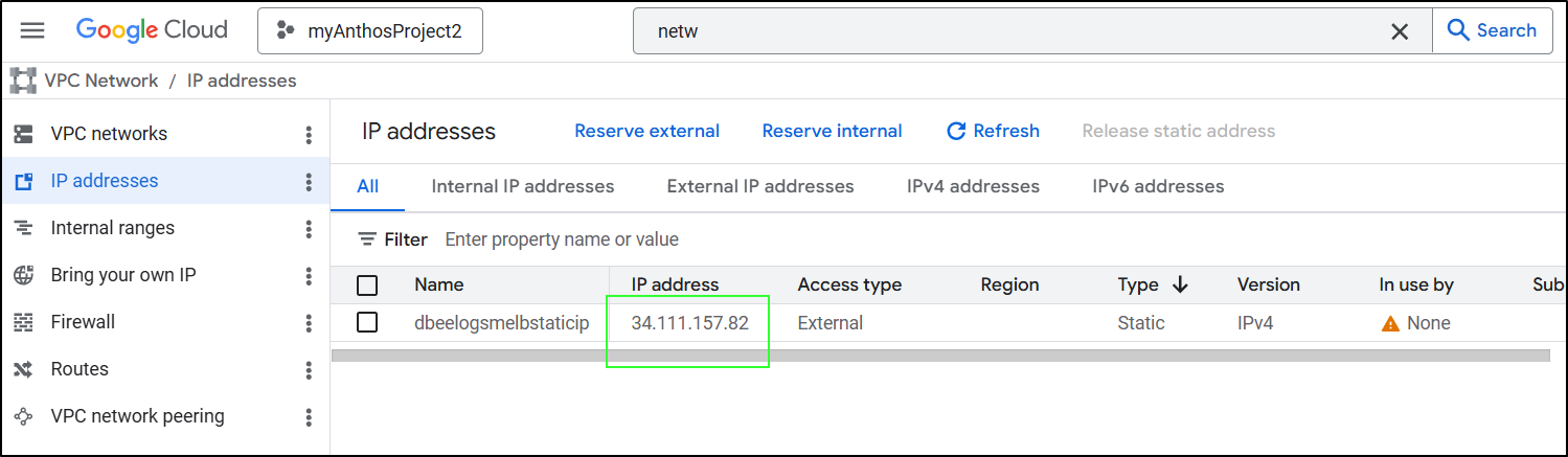Then take the new static IPv4 (34.54.122.70)