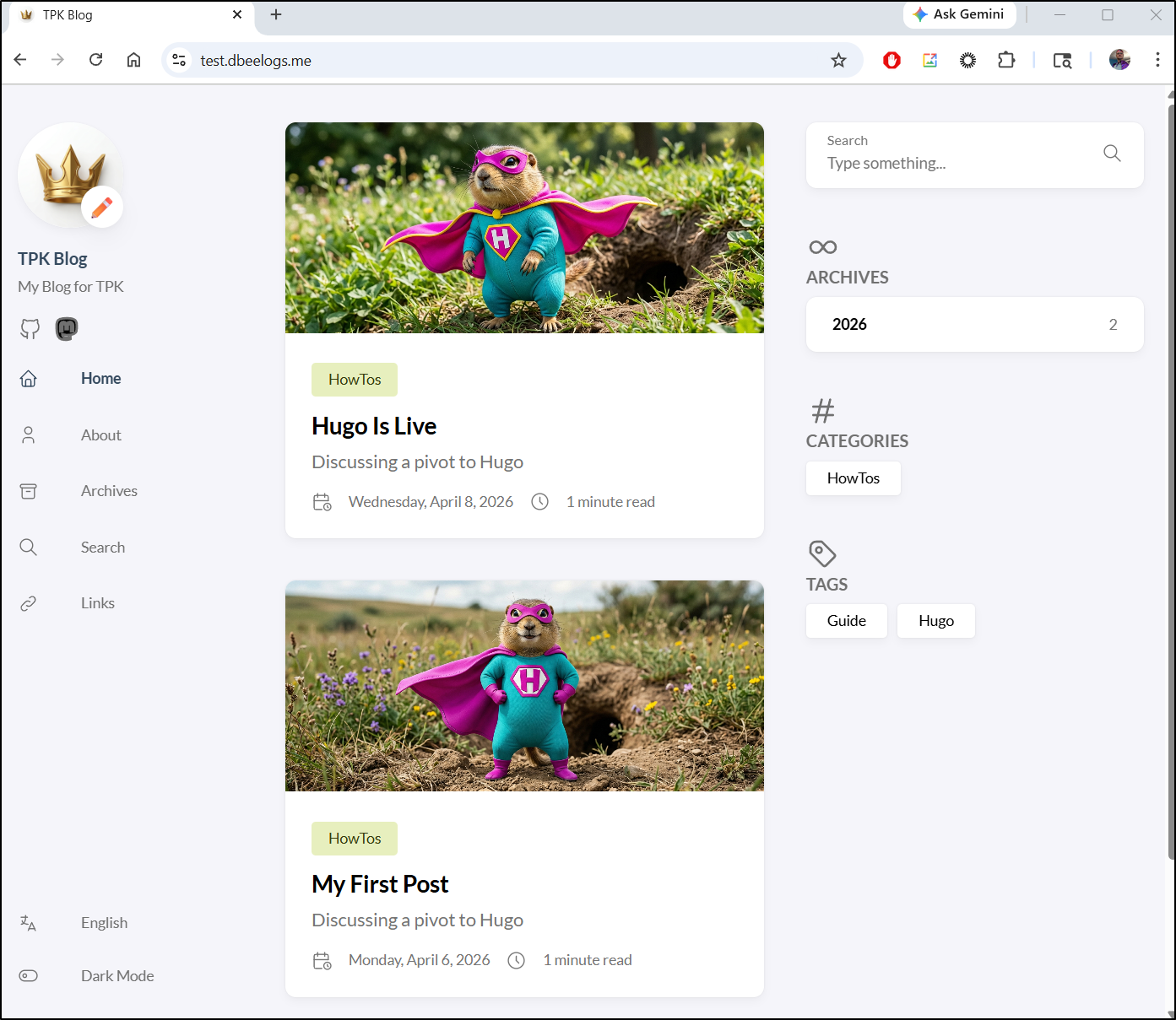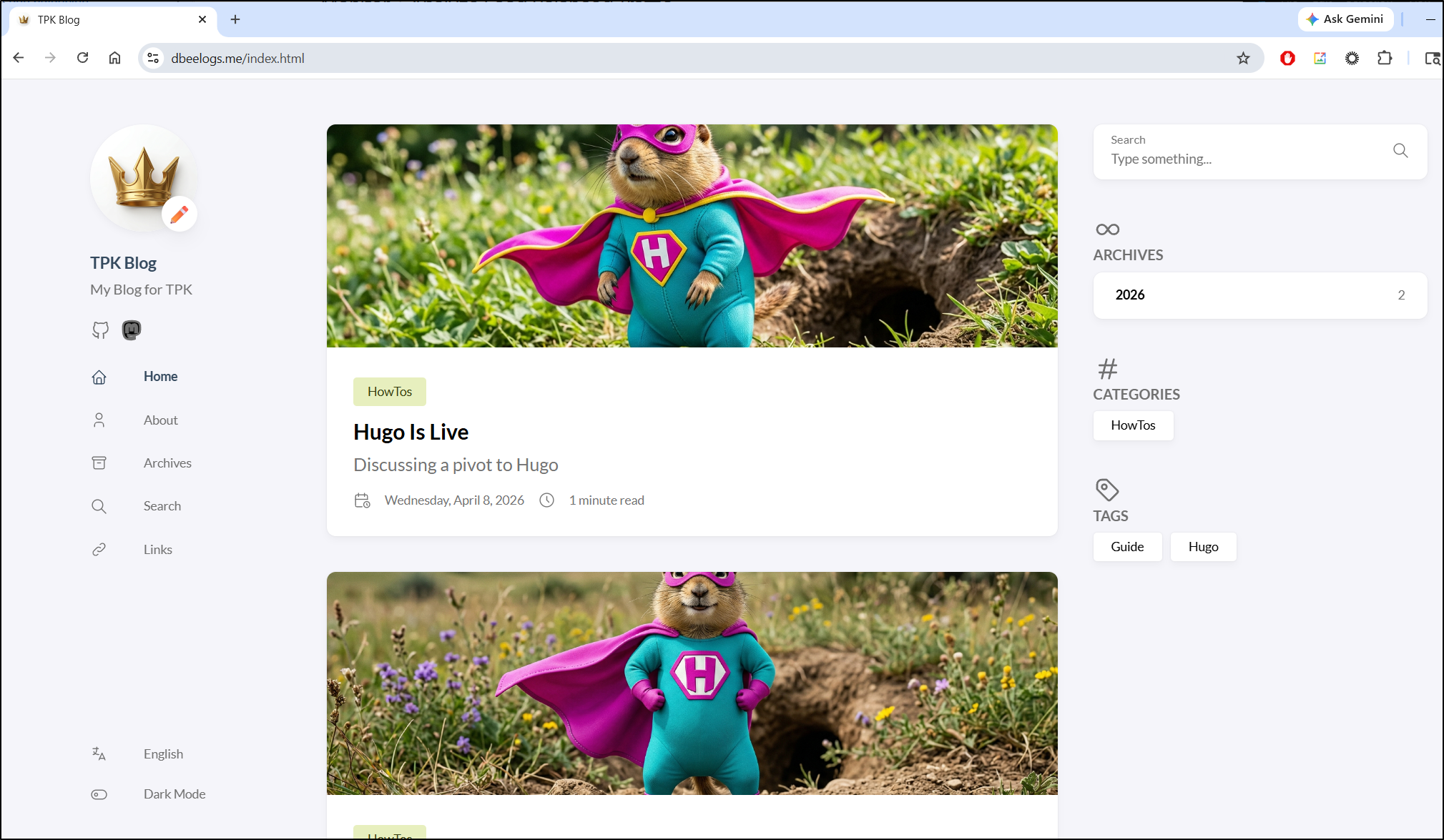 I can now use the URL without adding “index.html” and see the blog