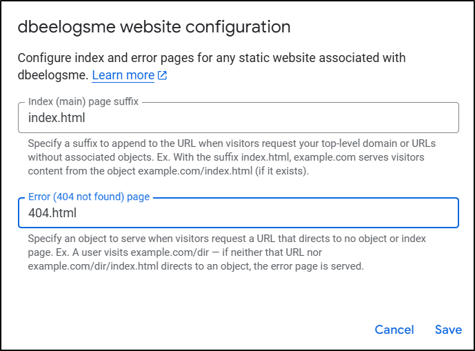 Now we can set the index and 404 pages (you want to at least set the index/home page)