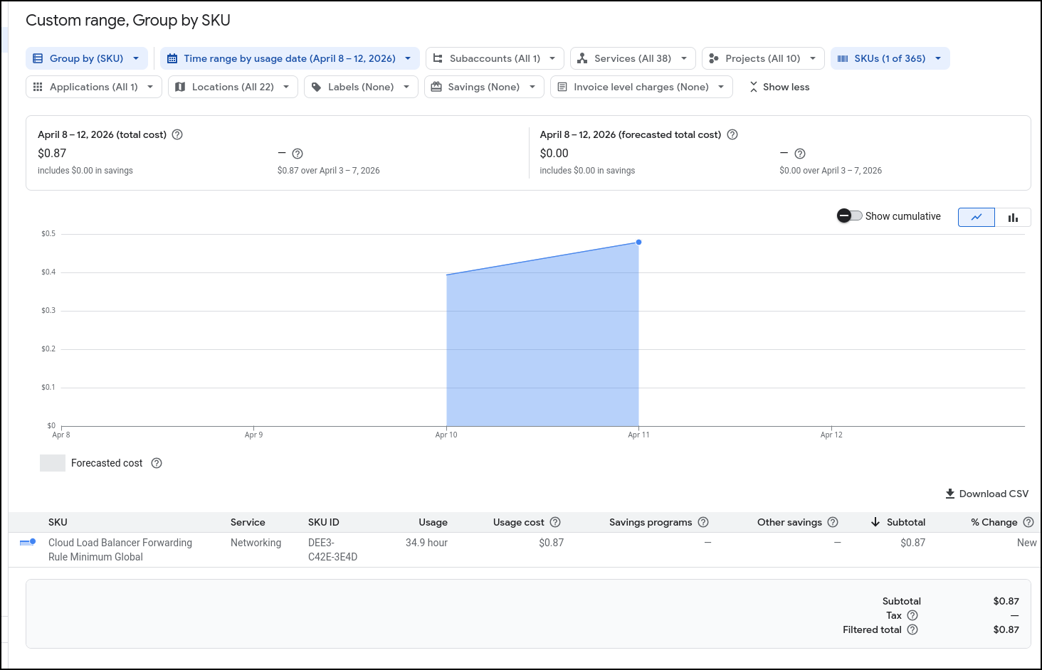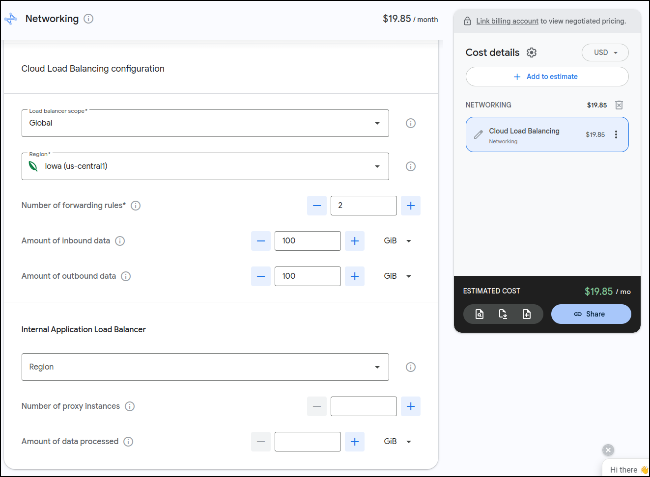 I let it sit for a few days and came back and saw it might even be less than I thought. i have 3 Load Balancers presently (1 test, 2 for production with one being a redirect) and it looks to me like it might be closer to $15 for the month than $20