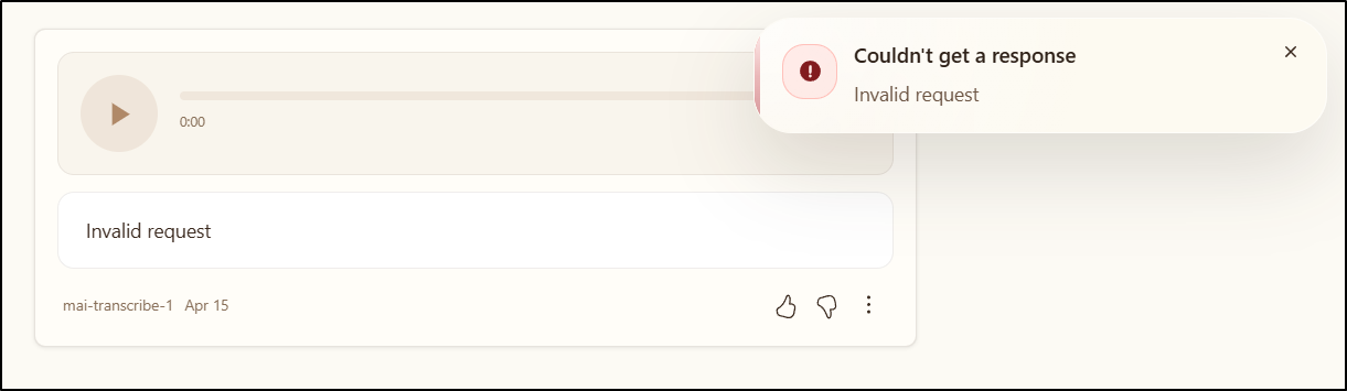 The voice creation, the text to voice is okay. And the image model has greatly improved, if for no other reason, diagrams are actually usable period. I think going forward, I will regularly check back on the MAI playground and see if it’s improved at all period. My final test here is using a Android app that’s a voice recorder to record this summary and transcribe it. We’ll see how it goes.