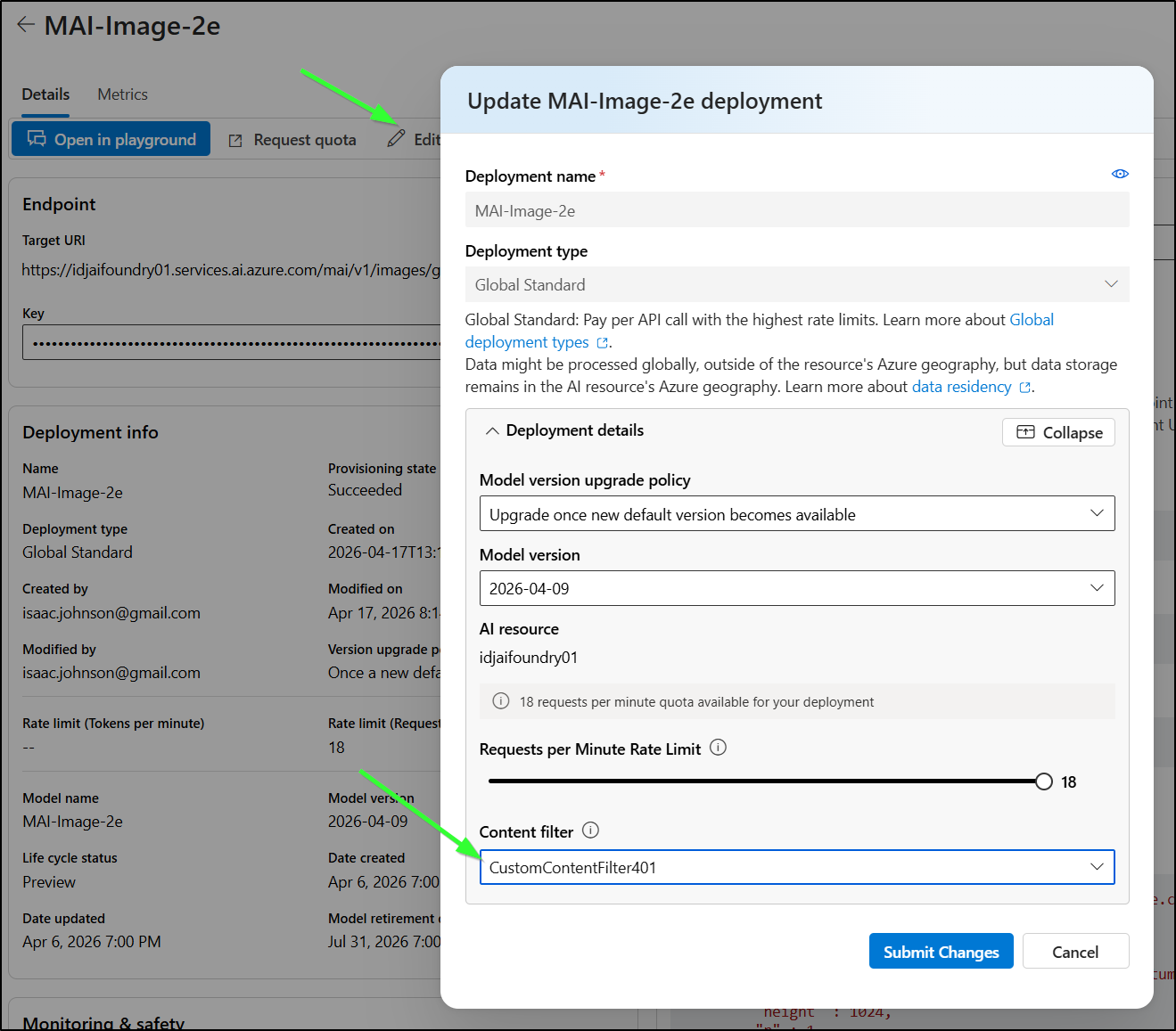 AI Foundry deployment with custom filter