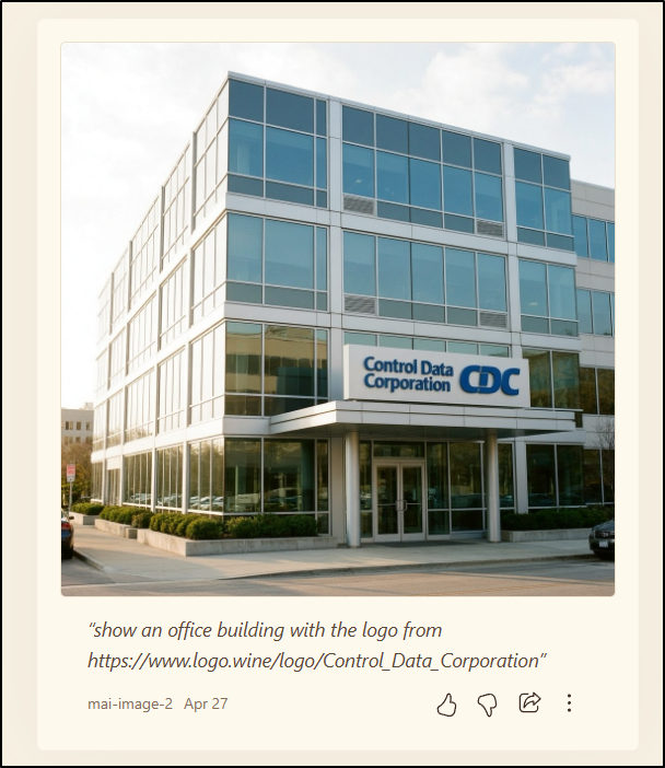 show an office building with the logo from https://www.logo.wine/logo/Control_Data_Corporation